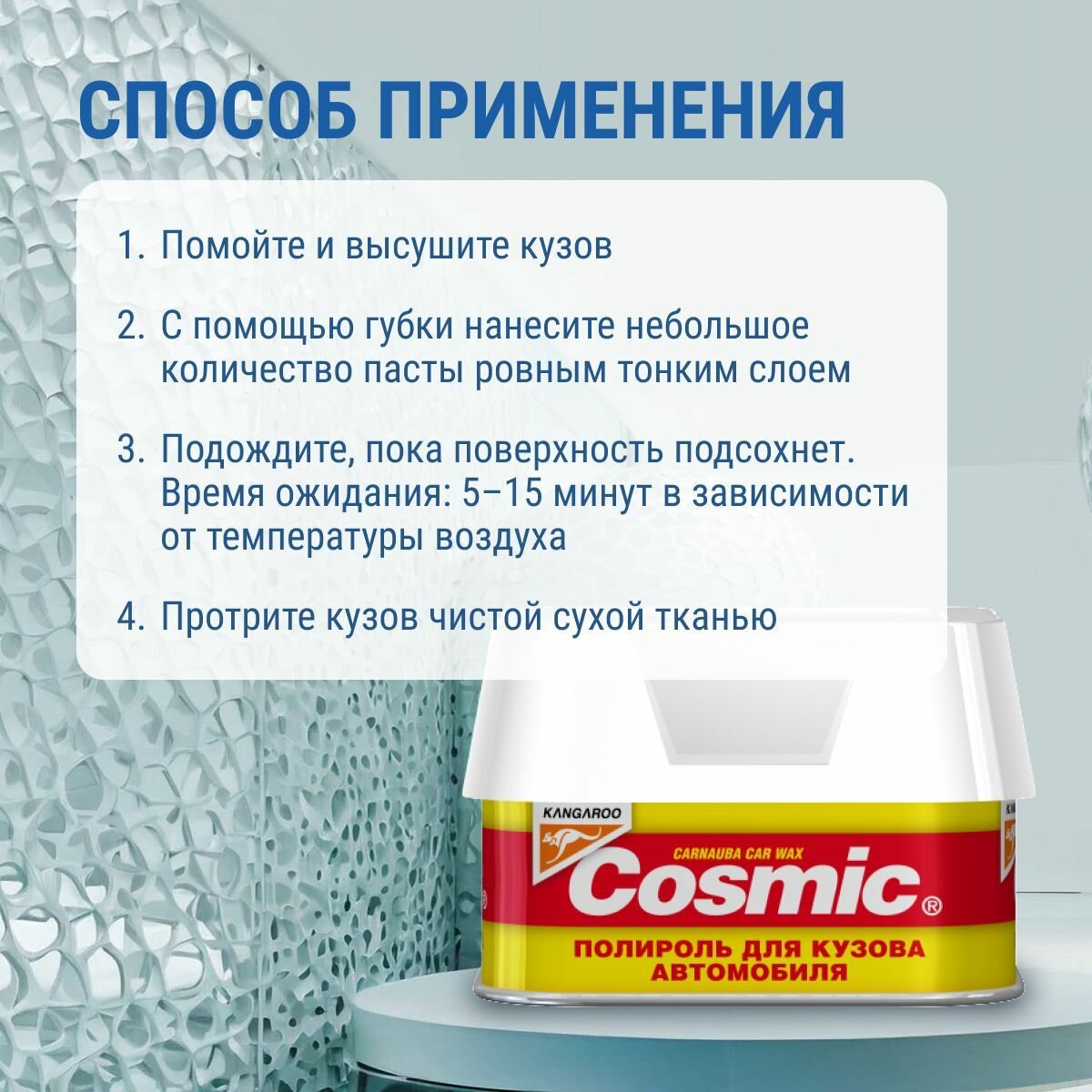 Полироль для автомобиля, защитный полироль с воском карнауба для кузова Cosmic Kangaroo 200 г(губка в комплекте) интересное: