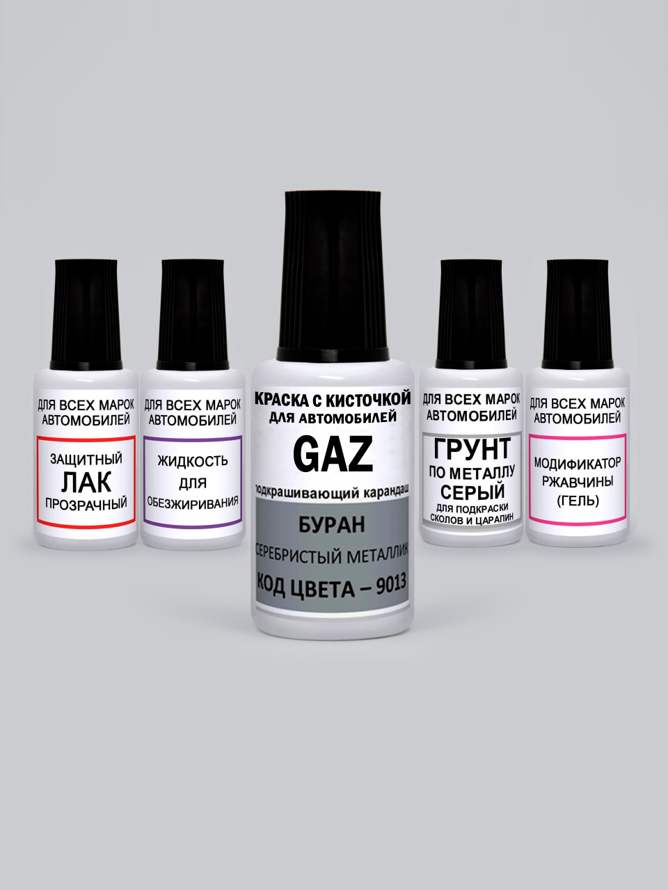 Купить Краска для сколов во флаконе с кисточкой 9013 GAZ Буран, Серебристый металлик, краска+лак 5 предметов