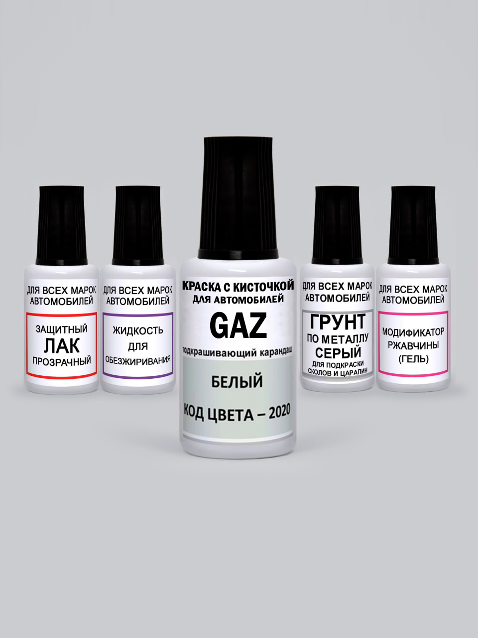 Купить Краска для сколов во флаконе с кисточкой 2020 GAZ White, Белый, краска+лак 5 предметов