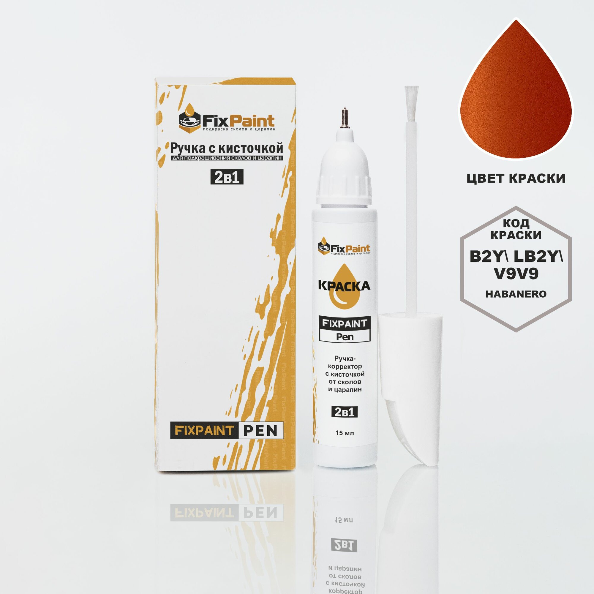 Подкраска VOLKSWAGEN, код V9, B2Y, LB2Y, V9V9, HABANERO, ручка-корректор с кисточкой 2 в 1 FixPaint Pen 15 мл, эмаль для ремонта сколов и царапин