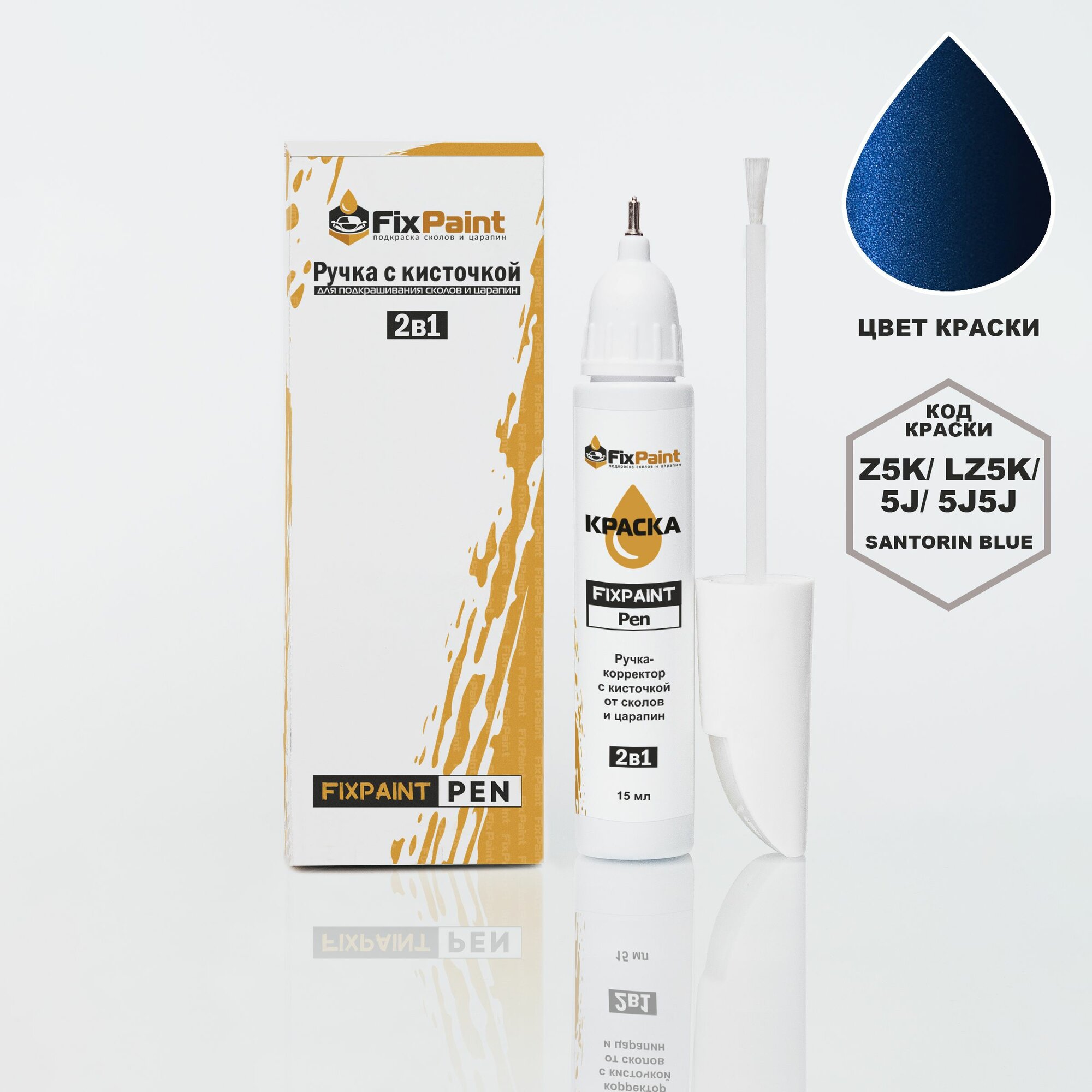 Купить Подкраска AUDI TT, код 5J, SANTORIN BLUE, ручка-корректор с кисточкой 2 в 1 FixPaint Pen 15 мл, эмаль для ремонта сколов и царапин