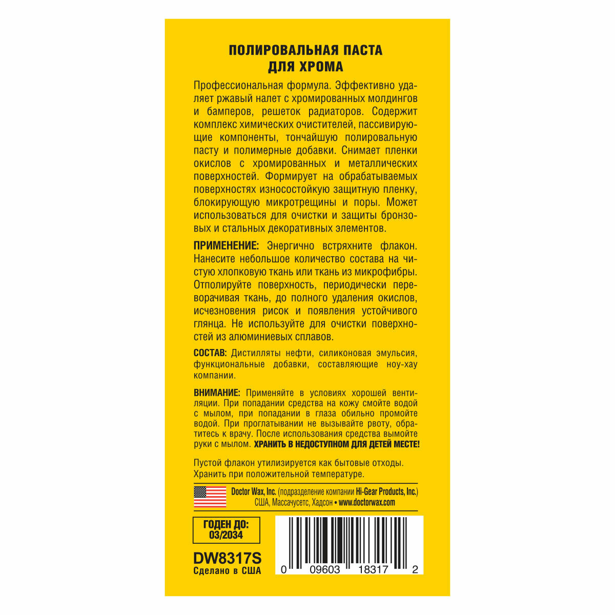 Полировальная паста для хрома DW8317S интересное: