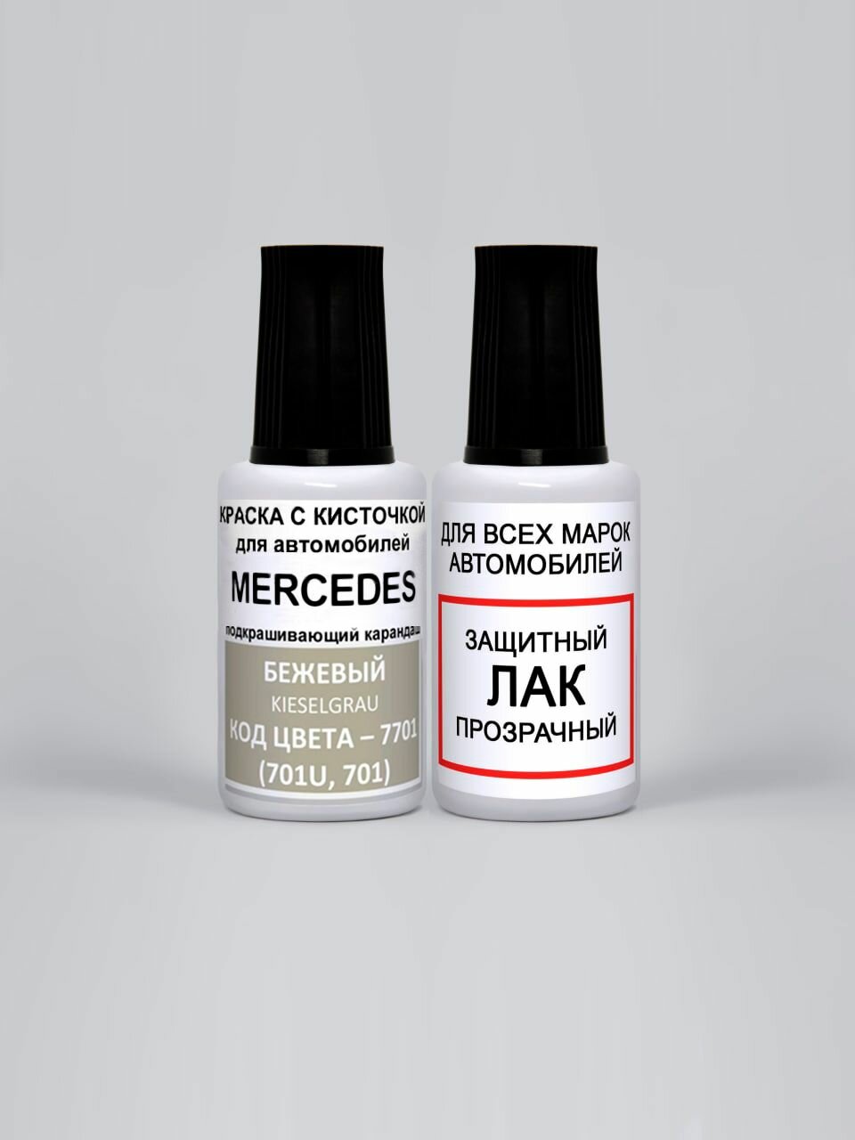 Купить Краска для сколов во флаконе с кисточкой 7701 (701U, 701) Mercedes Бежевый, Kieselgrau 20 мл. , краска+лак 2 предмета