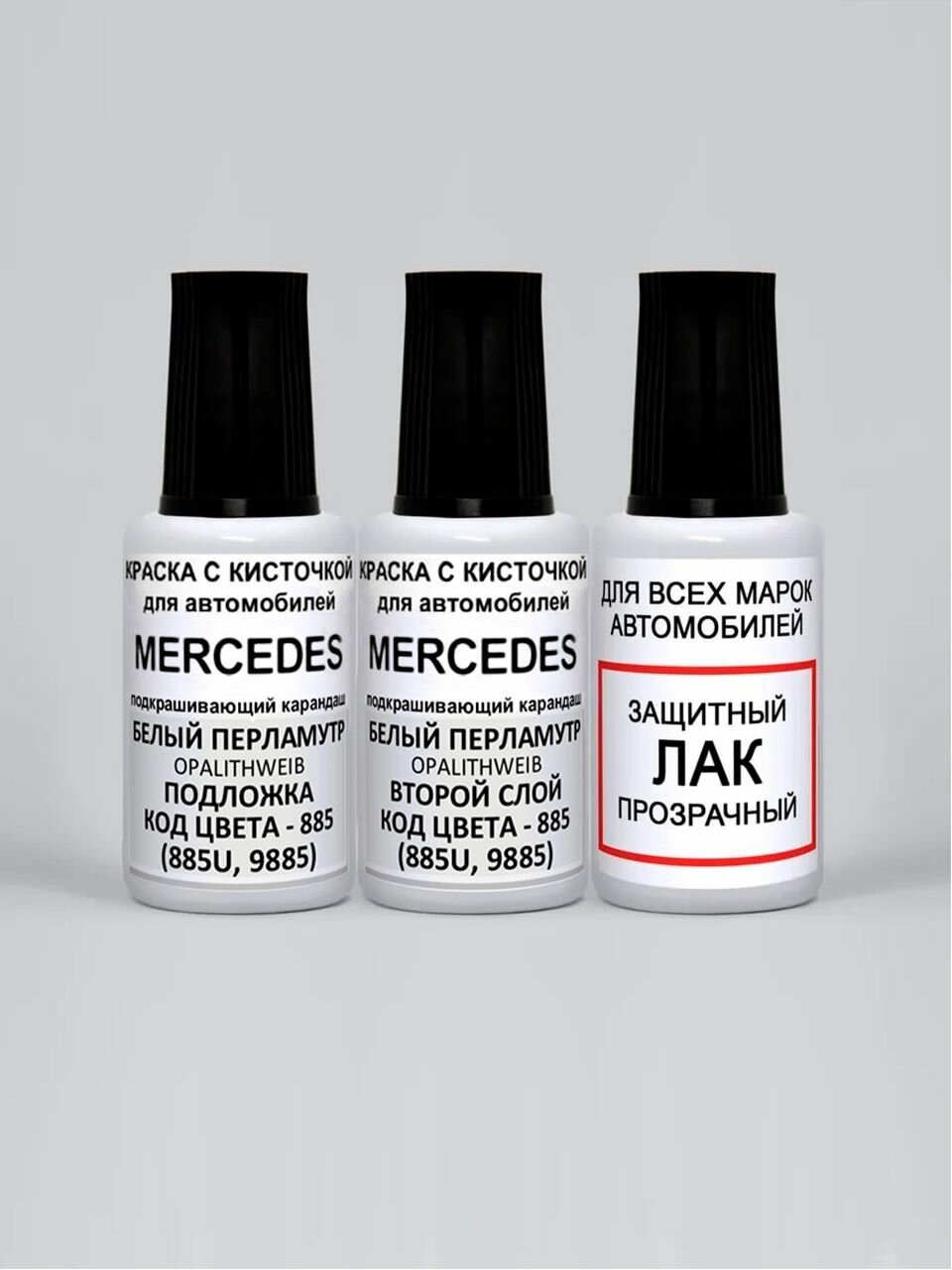 Купить Краска для сколов во флаконе с кисточкой 885 (885U, 9885) Mercedes Белый перламутр, Opalithweib 2*20 мл. , краска+лак 3 предмета