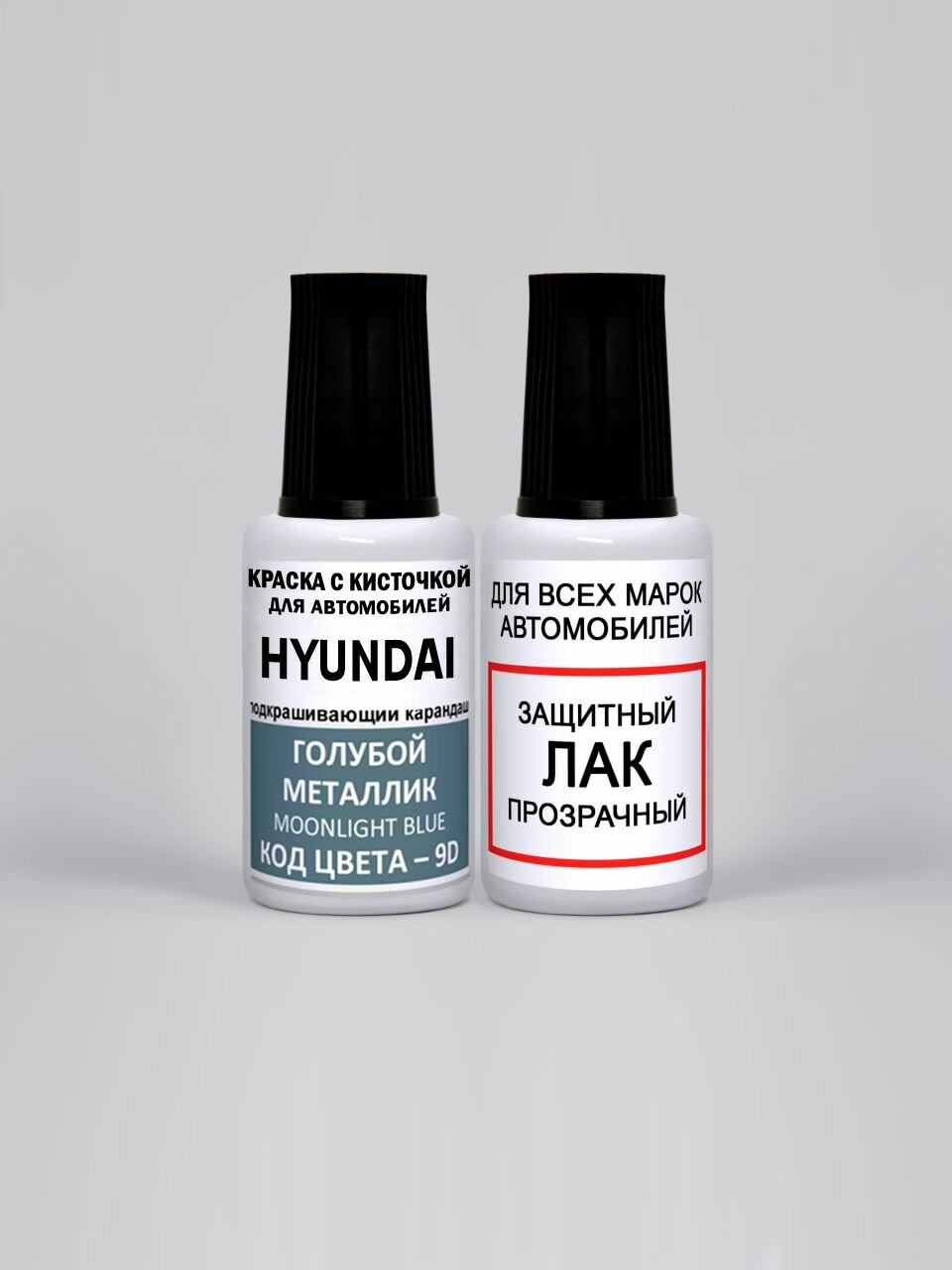 Купить Краска для сколов во флаконе с кисточкой 9D Hyundai Голубой металлик, Moonlight Blue 20 мл. , краска+лак 2 предмета