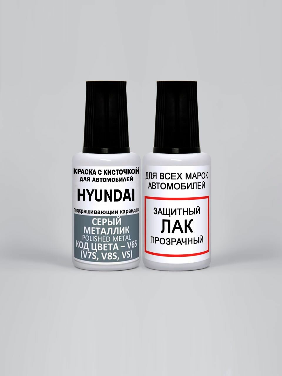 Купить Краска для сколов во флаконе с кисточкой V6S (V7S, V8S, VS, 8S) Hyundai Серый металлик, Polished Metal 20 мл. , краска+лак 2 предмета