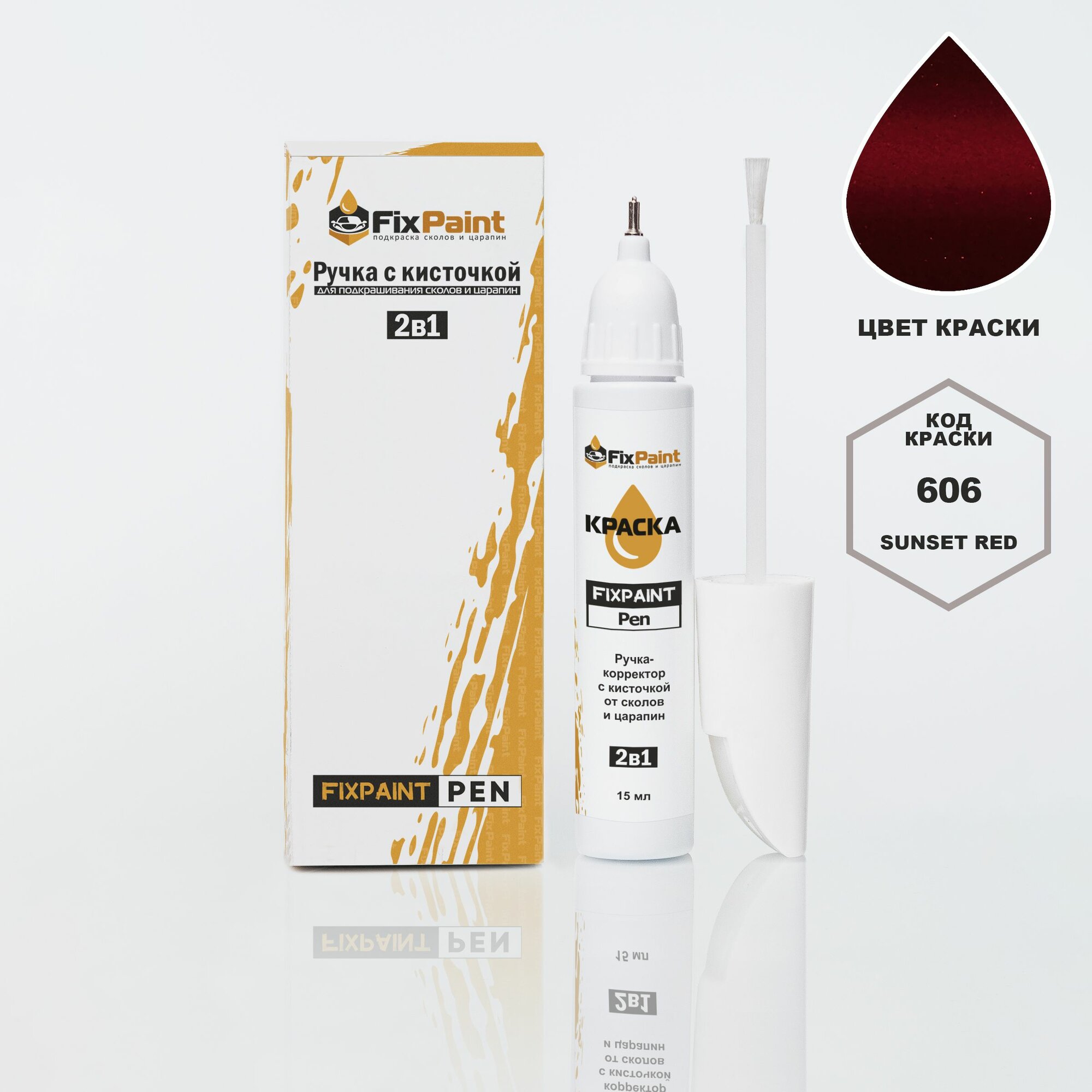Подкраска GAC FCA, код 606, Sunset Red, ручка-корректор с кисточкой 2 в 1 FixPaint Pen 15 мл, эмаль для ремонта сколов и царапин