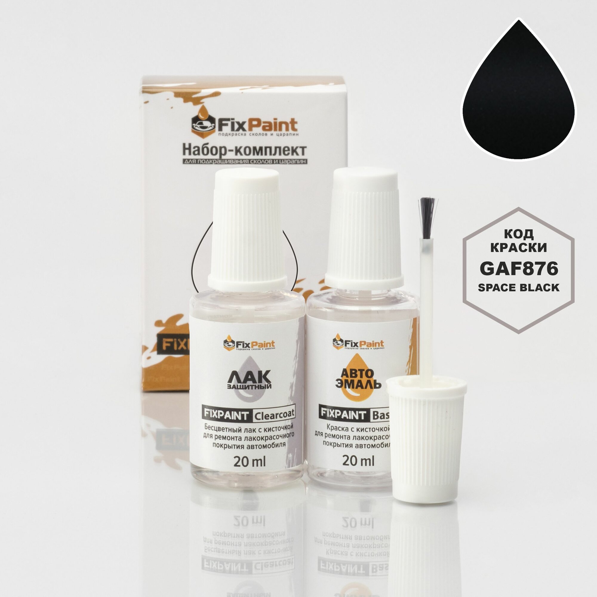 Купить Подкраска GAC FCA, код GAF876, 876, Space Black, набор FixPaint Double, краска и лак для ремонта сколов и царапин