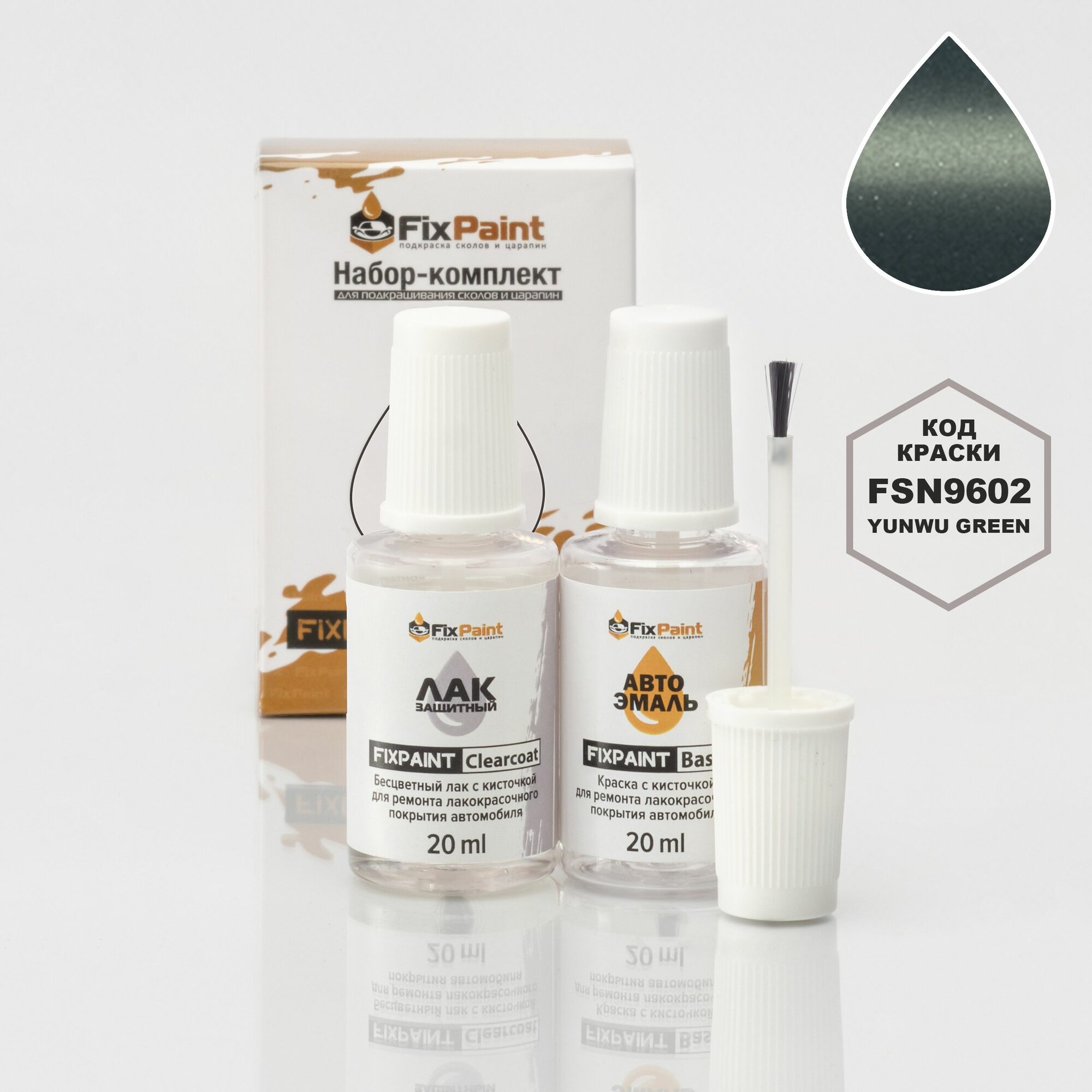 Подкраска Dongfeng Nissan, код FSN9600, Mocai Green, набор FixPaint Double, краска и лак для ремонта сколов и царапин