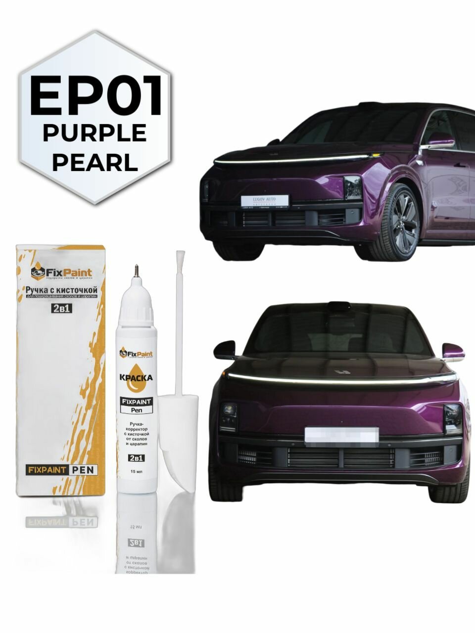 Купить Подкраска LIXIANG L9, код LIEP01, EP01, Purple Pearl, ручка-корректор с кисточкой 2 в 1 FixPaint Pen 15 мл, эмаль для ремонта сколов и царапин