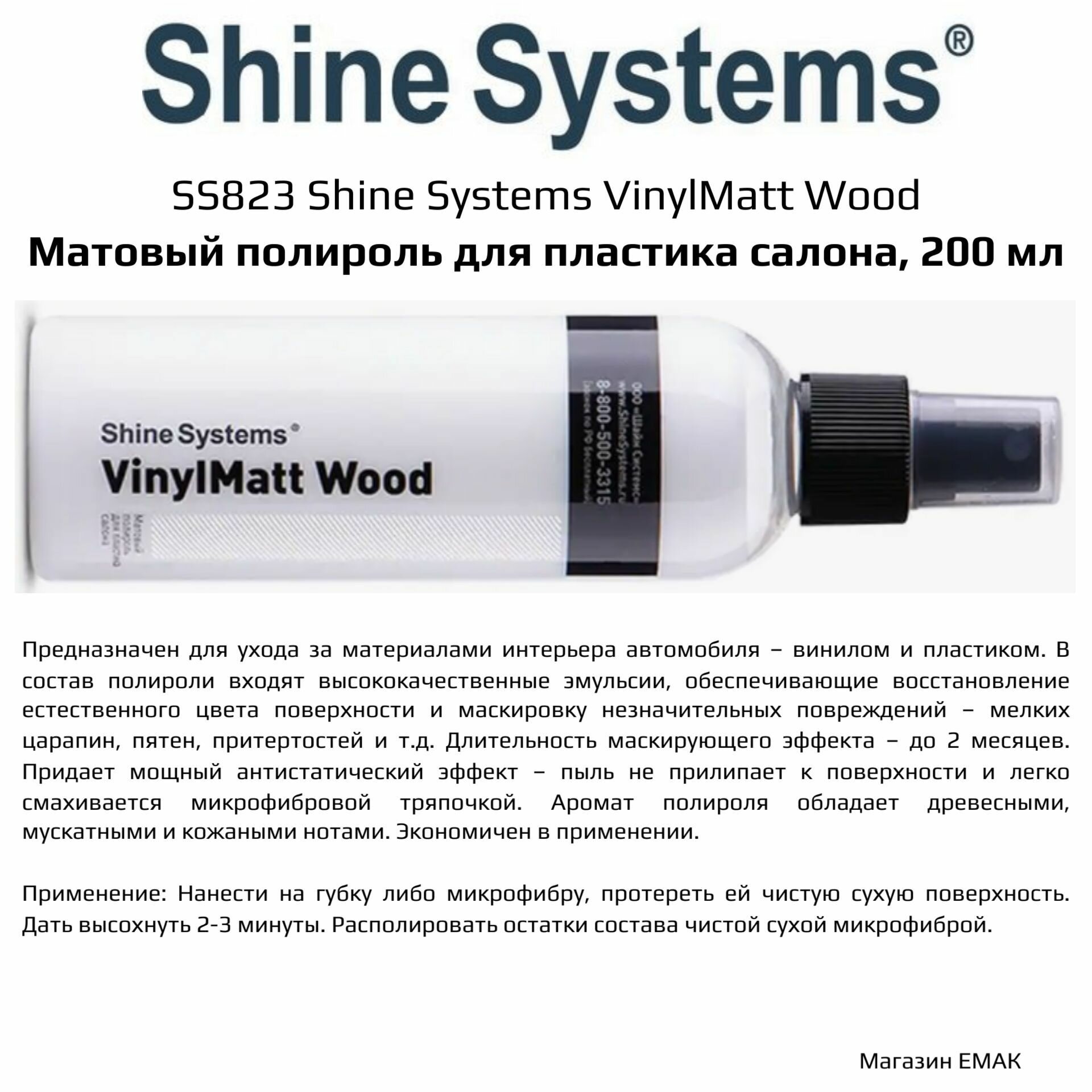 SS823 Shine Systems VinylMatt Wood - матовый полироль для пластика салона, 200 мл интересное: