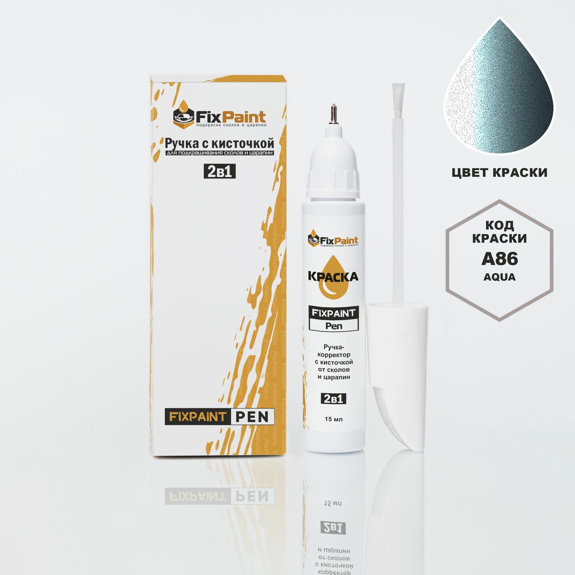 Купить Подкраска MITSUBISHI LANCER, код A86, AQUA, ручка-корректор с кисточкой 2 в 1 FixPaint Pen 15 мл, эмаль для ремонта сколов и царапин