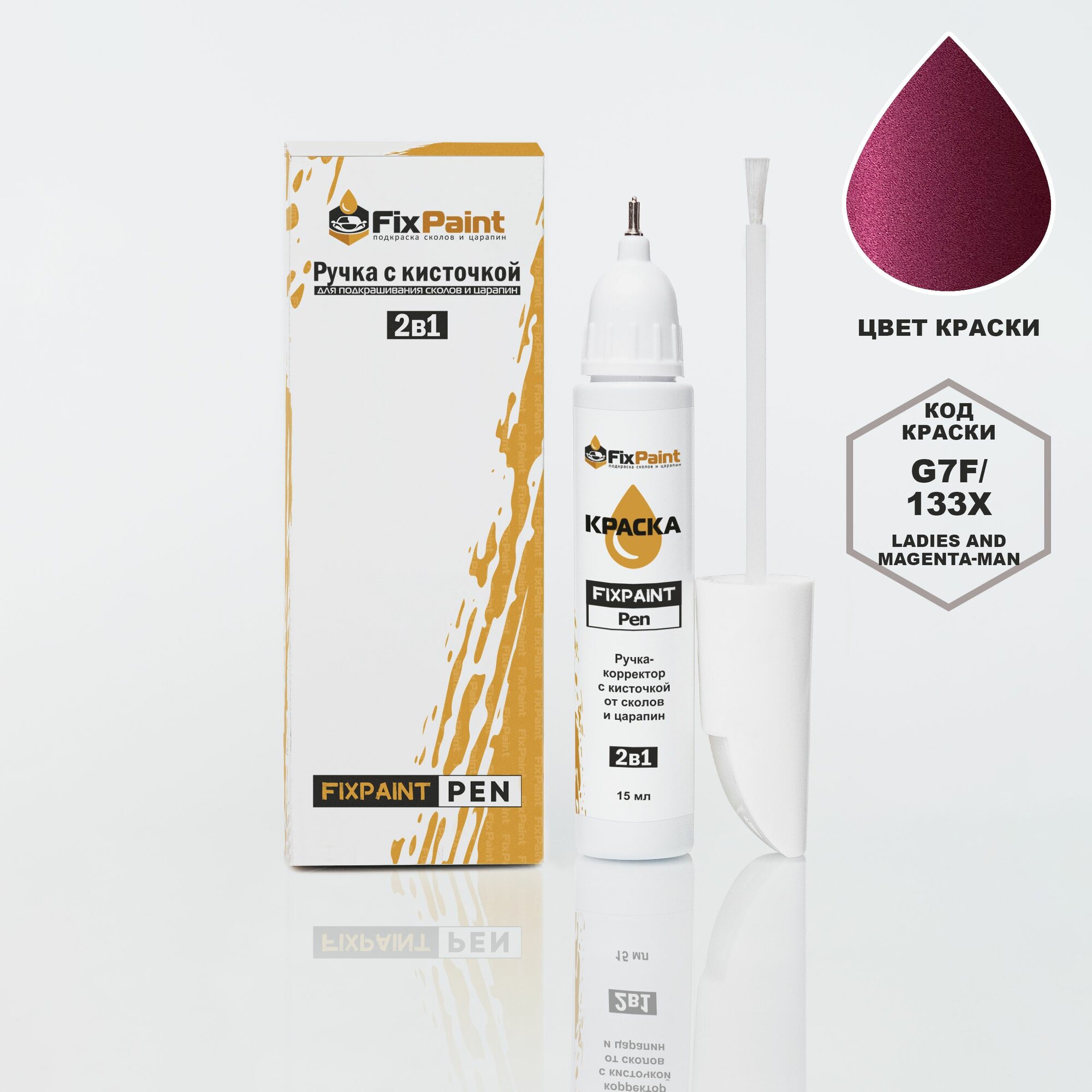 Купить Подкраска CHEVROLET SONIC, код G7F, 133X, LADIES AND MAGENTA-MAN, ручка-корректор с кисточкой 2 в 1 FixPaint Pen 15 мл, эмаль для ремонта сколов и царапин