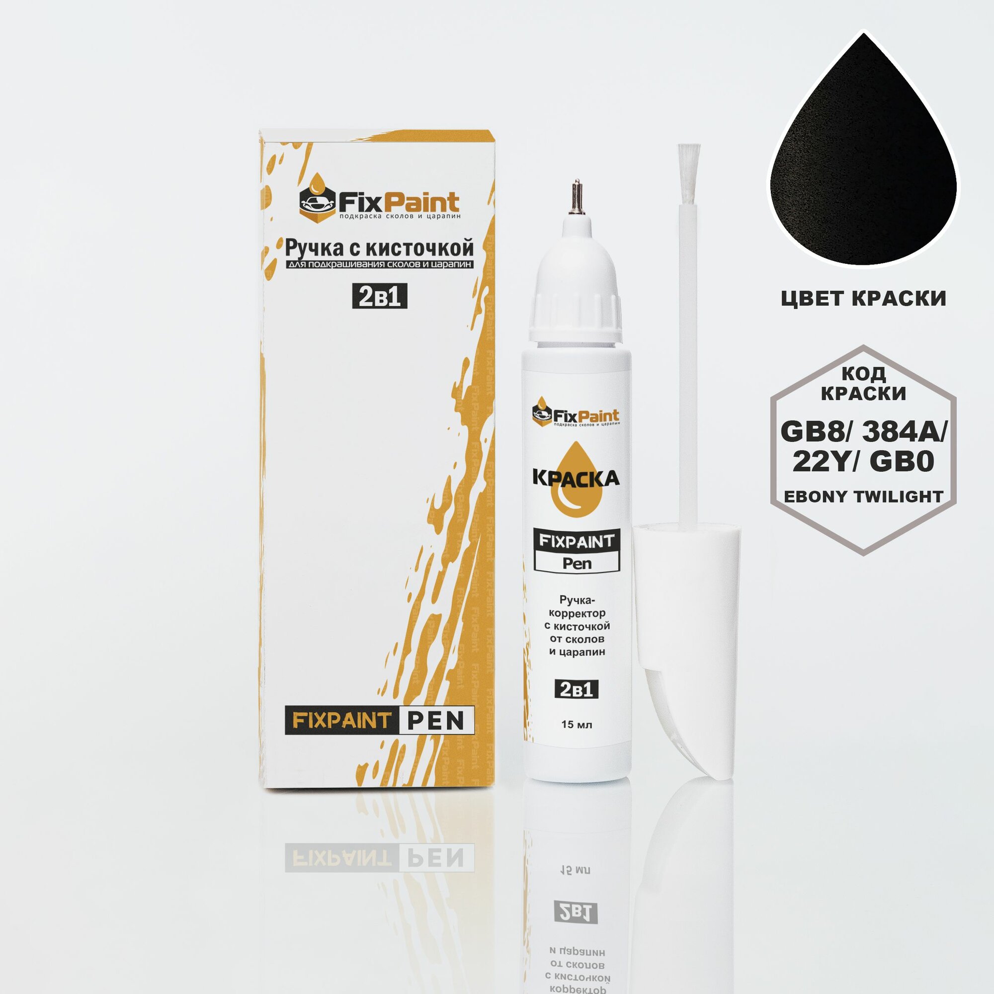 Купить Подкраска CHEVROLET SONIC, код GB8, 384A, 22Y, GB0, EBONY TWILIGHT, ручка-корректор с кисточкой 2 в 1 FixPaint Pen 15 мл, эмаль для ремонта сколов и царапин