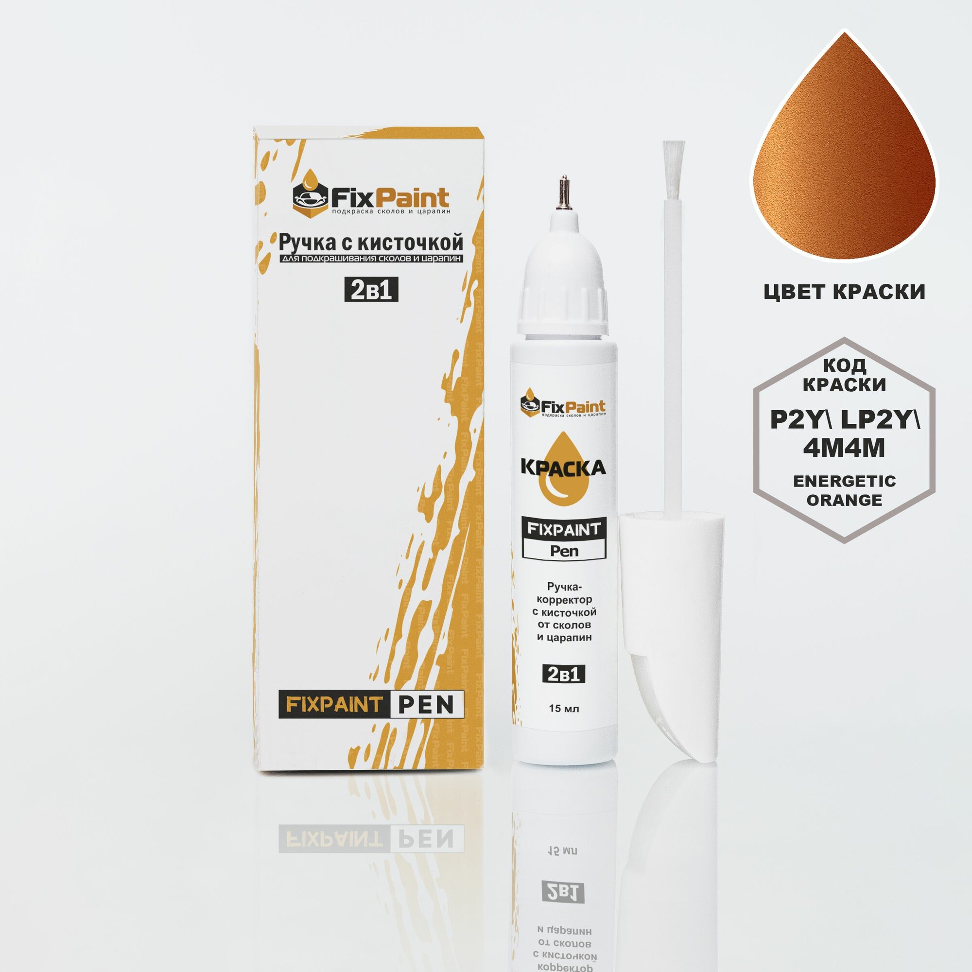 Купить Подкраска VOLKSWAGEN TRANSPORTER, код 4M, P2Y, LP2Y, 4M4M, ENERGETIC, ручка-корректор с кисточкой 2 в 1 FixPaint Pen 15 мл, эмаль для ремонта сколов и царапин