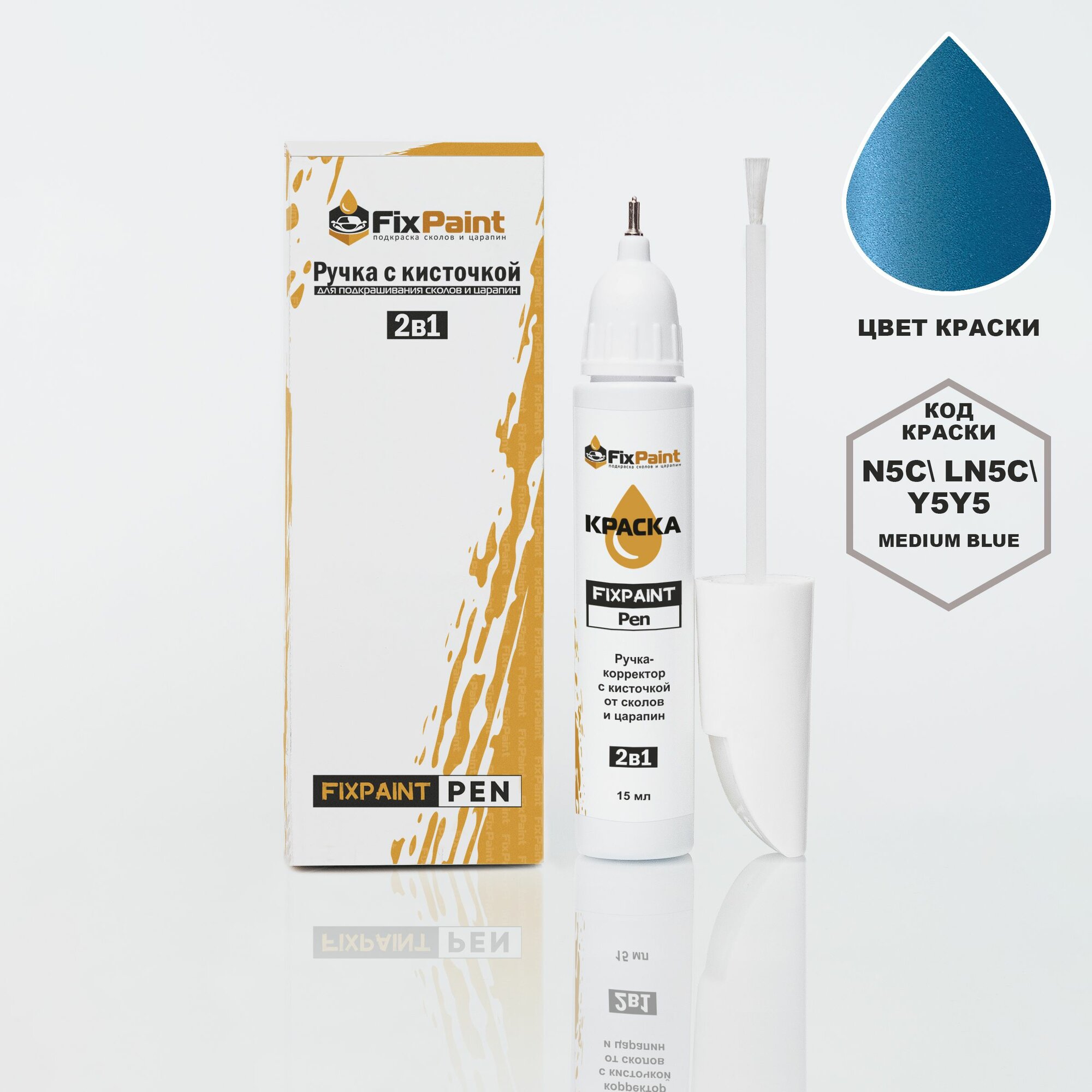 Купить Подкраска VOLKSWAGEN TRANSPORTER, код Y5, N5C, LN5C, Y5Y5, MEDIUM BLUE, ручка-корректор с кисточкой 2 в 1 FixPaint Pen 15 мл, эмаль для ремонта сколов и царапин
