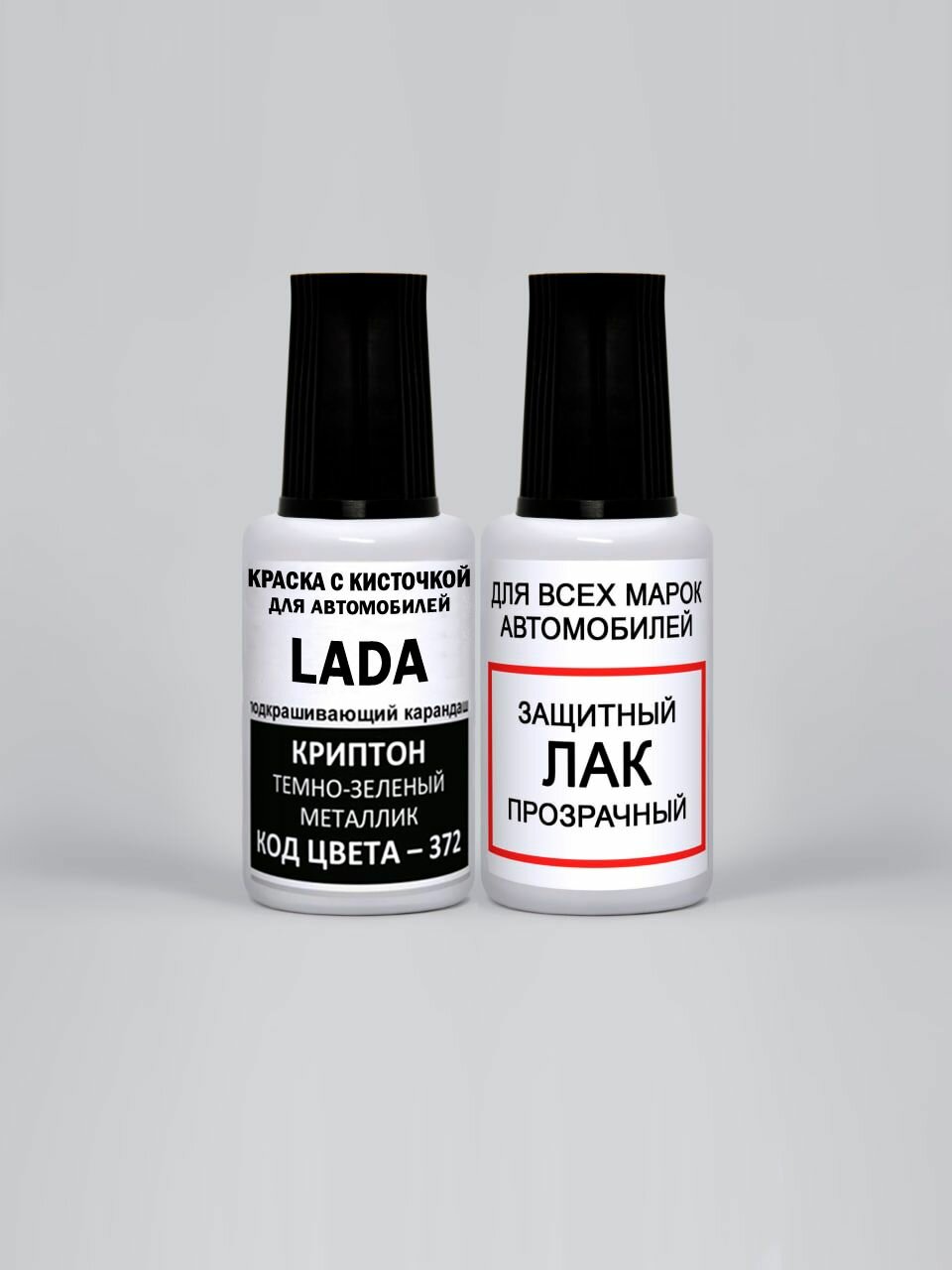 Купить Подкраска для сколов и царапин, кисточка с краской 372 Лада Криптон, Темно-зелены металлик 20 мл. , краска+лак 2 предмета