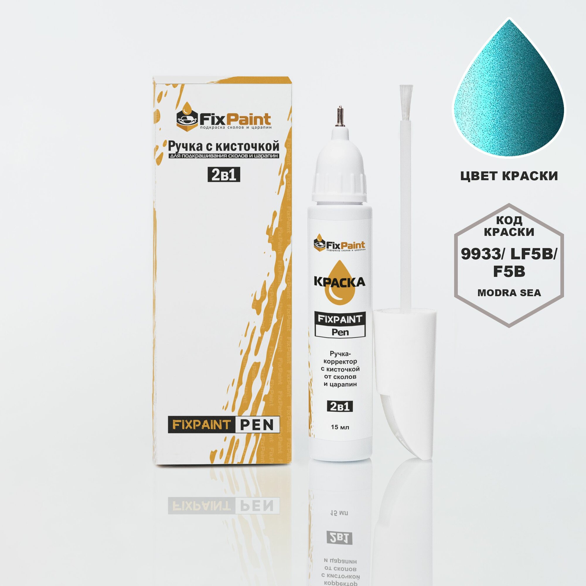 Купить Подкраска SKODA, код 9933, LF5B, F5B, MODRA SEA, ручка-корректор с кисточкой 2 в 1 FixPaint Pen 15 мл, эмаль для ремонта сколов и царапин