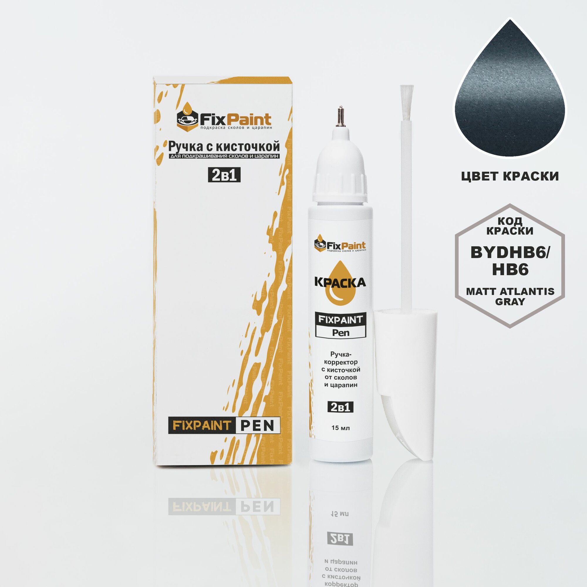 Купить Подкраска BYD, код BYDHB6, HB6, Matt Atlantis Gray, ручка-корректор с кисточкой 2 в 1 FixPaint Pen 15 мл, эмаль для ремонта сколов и царапин