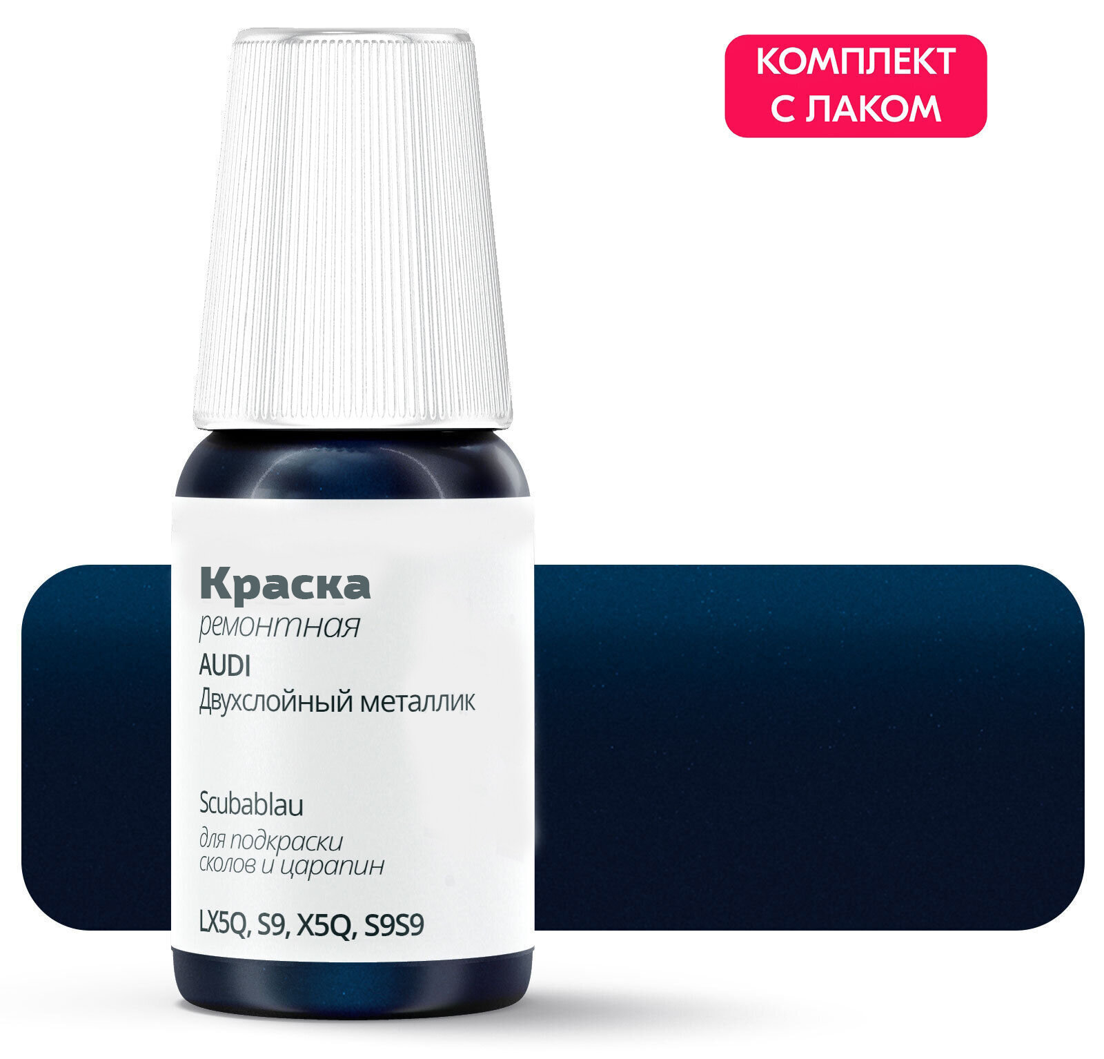 Подкраска для сколов и царапин для ремонта на AUDI "Scubablau", код цвета: LX5Q, S9, X5Q, S9S9, штрих-корректор. Синий двухслойный металлик. Выпуск 2010 - 2020. интересное: