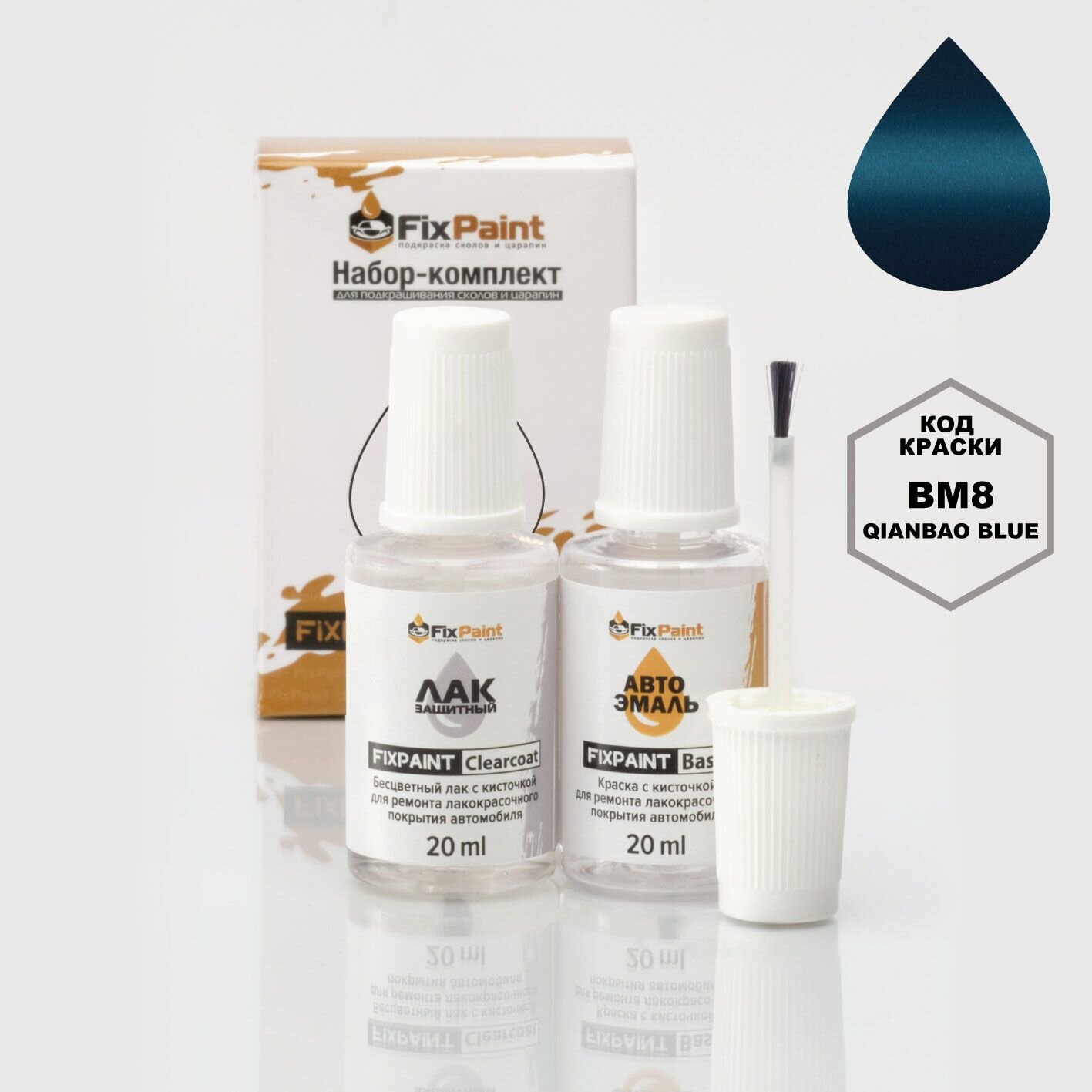 Купить Подкраска CHANGAN CHANG AN, код BM8, Qianbao Blue, набор FixPaint Double, краска и лак для ремонта сколов и царапин