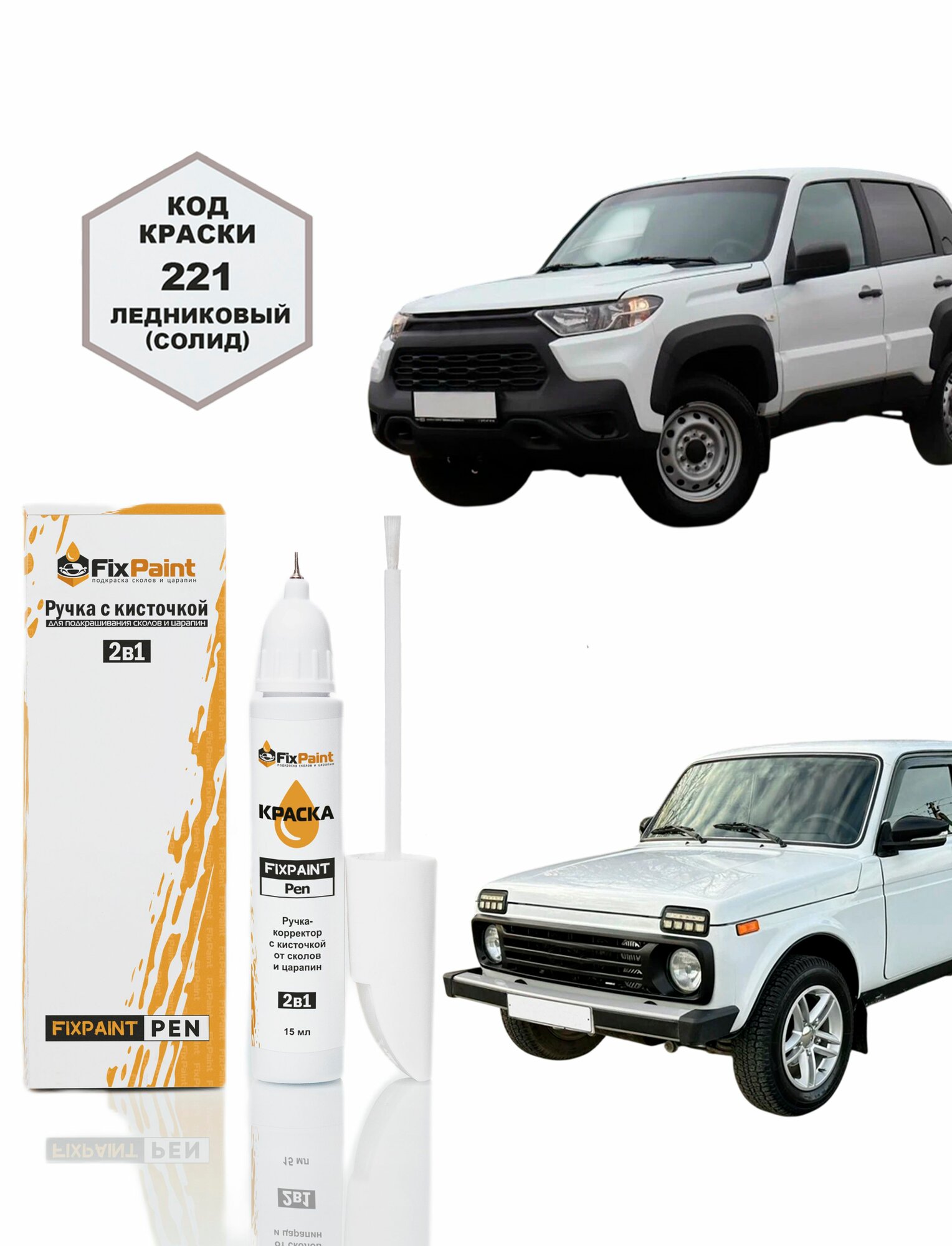 Купить Подкраска LADA NIVA, код 221, ледниковый (солид), ручка-корректор с кисточкой 2 в 1 FixPaint Pen 15 мл, эмаль для ремонта сколов и царапин