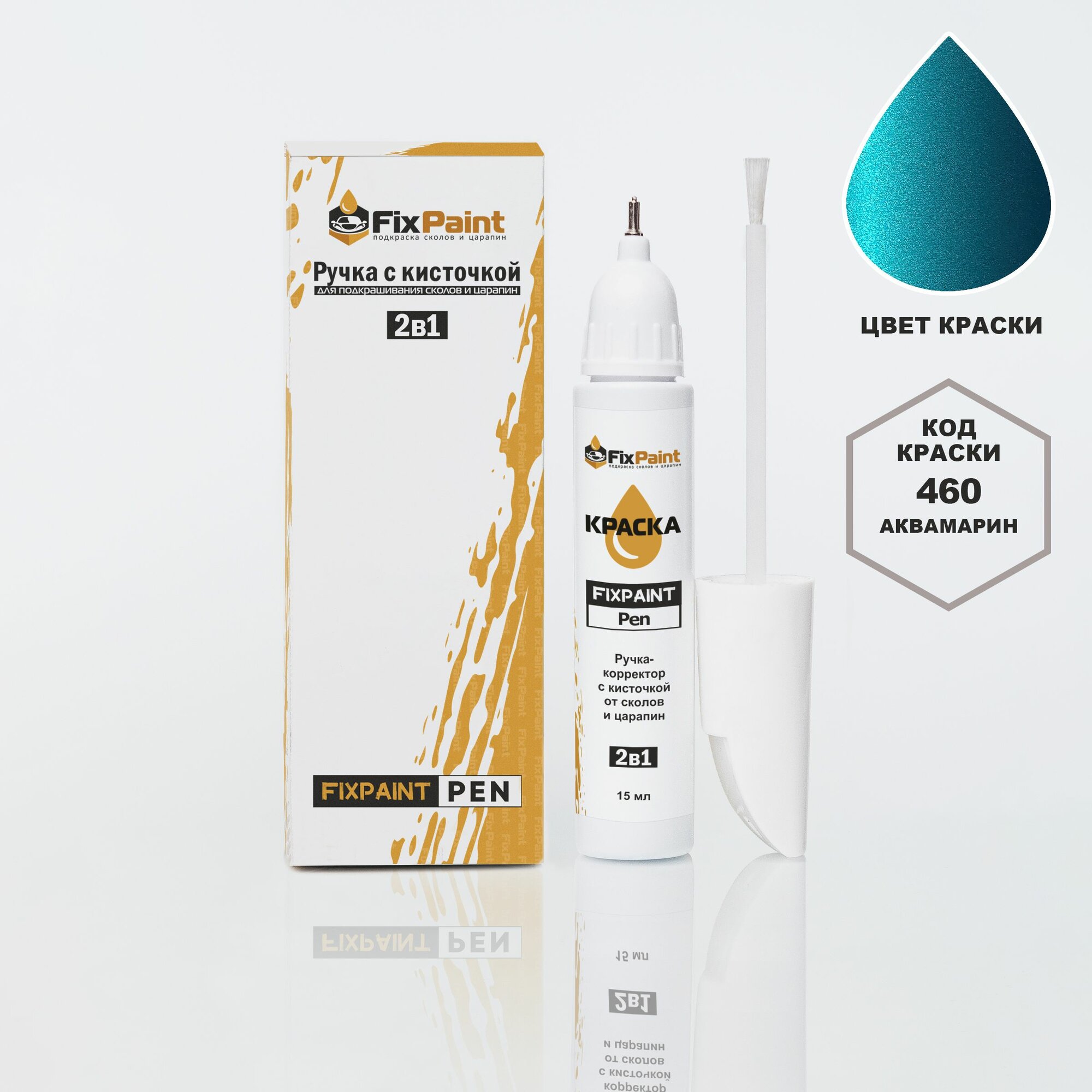 Купить Подкраска LADA NIVA, код 460, аквамарин, ручка-корректор с кисточкой 2 в 1 FixPaint Pen 15 мл, эмаль для ремонта сколов и царапин