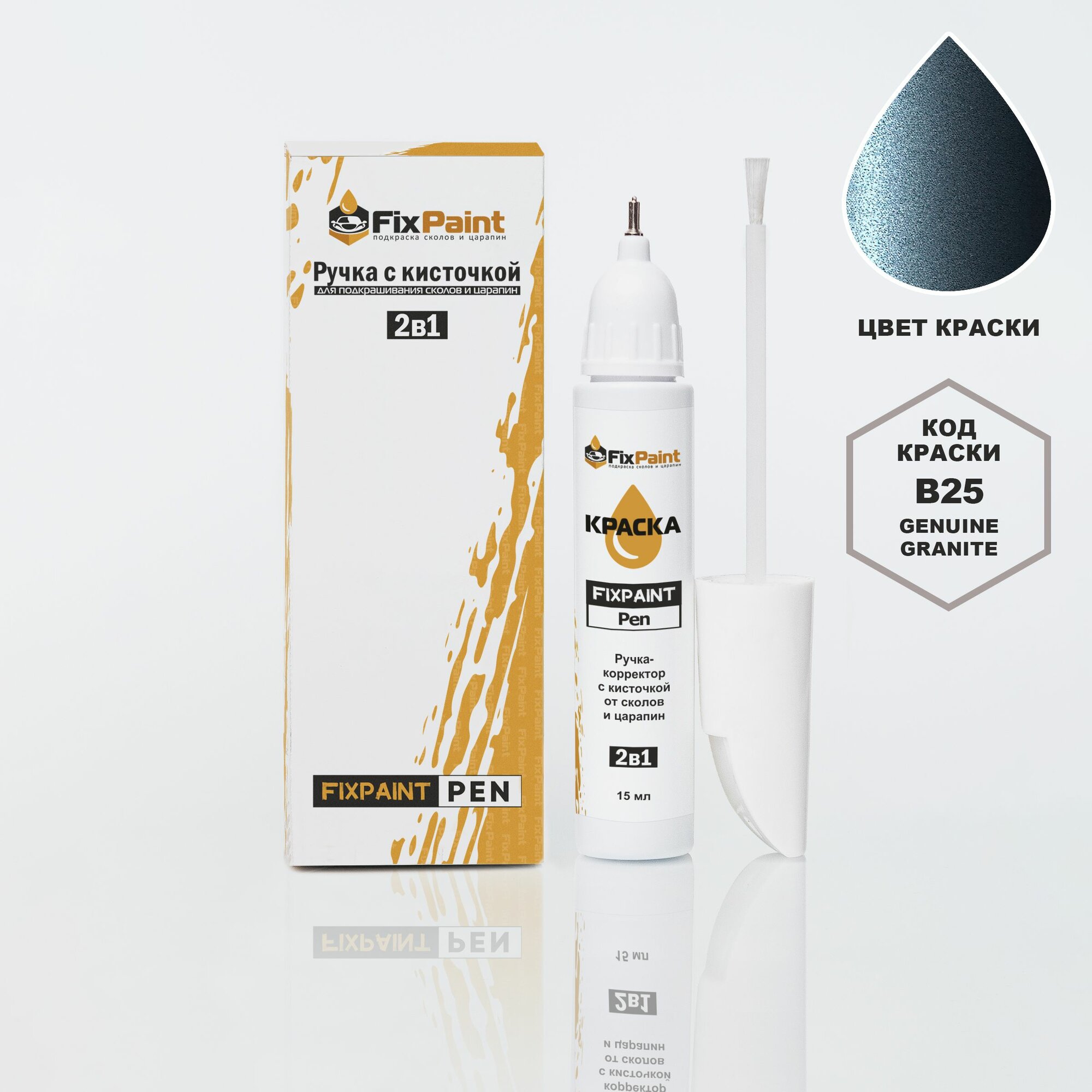 Купить Подкраска NISSAN PATHFINDER, код B25, GENUINE GRANITE, ручка-корректор с кисточкой 2 в 1 FixPaint Pen 15 мл, эмаль для ремонта сколов и царапин