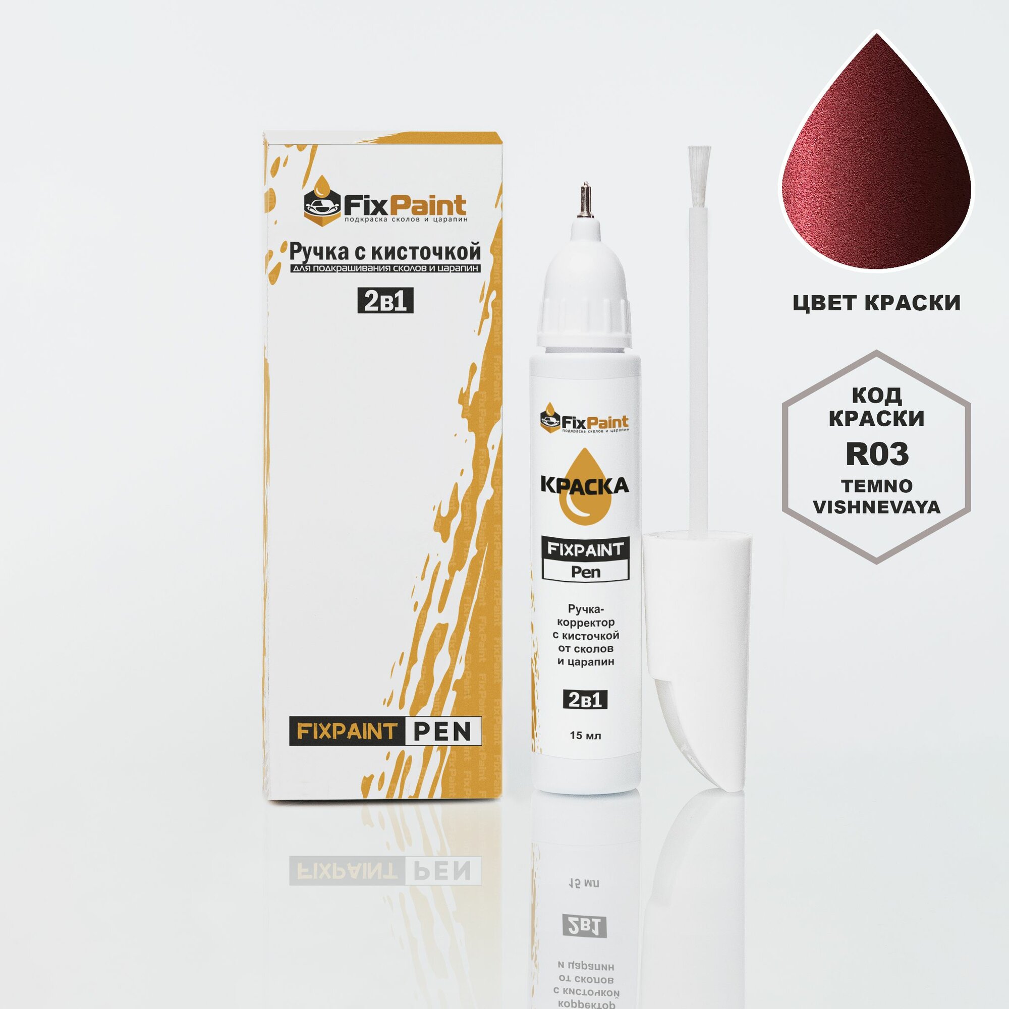 СохранитьПодкраска HYUNDAI, код R03, TEMNO VISHNEVAYA, ручка-корректор с кисточкой 2 в 1 FixPaint Pen 15 мл, эмаль для ремонта сколов и царапин интересное: