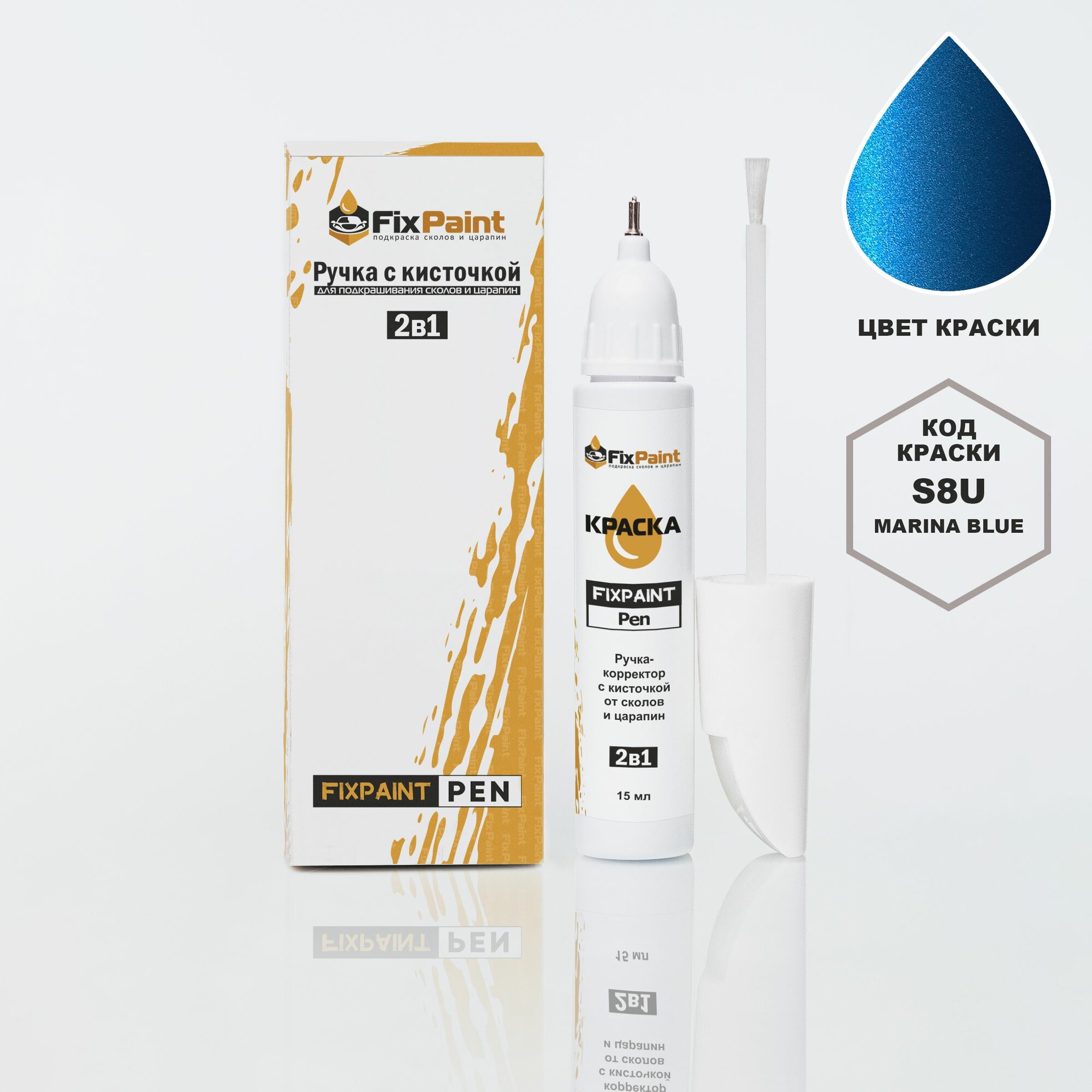 СохранитьПодкраска HYUNDAI, код S8U, MARINA BLUE, ручка-корректор с кисточкой 2 в 1 FixPaint Pen 15 мл, эмаль для ремонта сколов и царапин интересное: