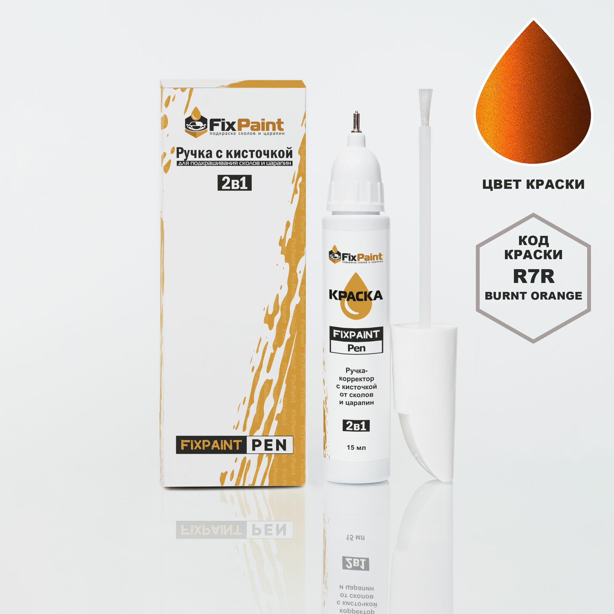 СохранитьПодкраска HYUNDAI, код R7R, BURNT ORANGE, ручка-корректор с кисточкой 2 в 1 FixPaint Pen 15 мл, эмаль для ремонта сколов и царапин интересное: