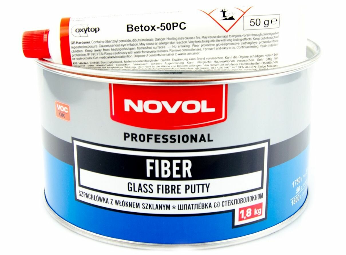 Шпатлевка автомобильная со стекловолокном Novol Fiber 1,8 г. / шпаклевка армированная автомобильная NOVOL 1220