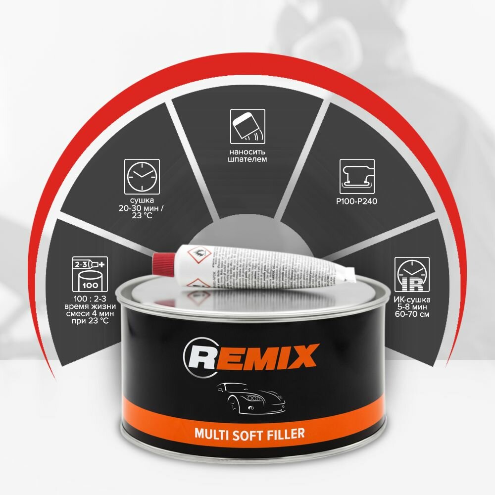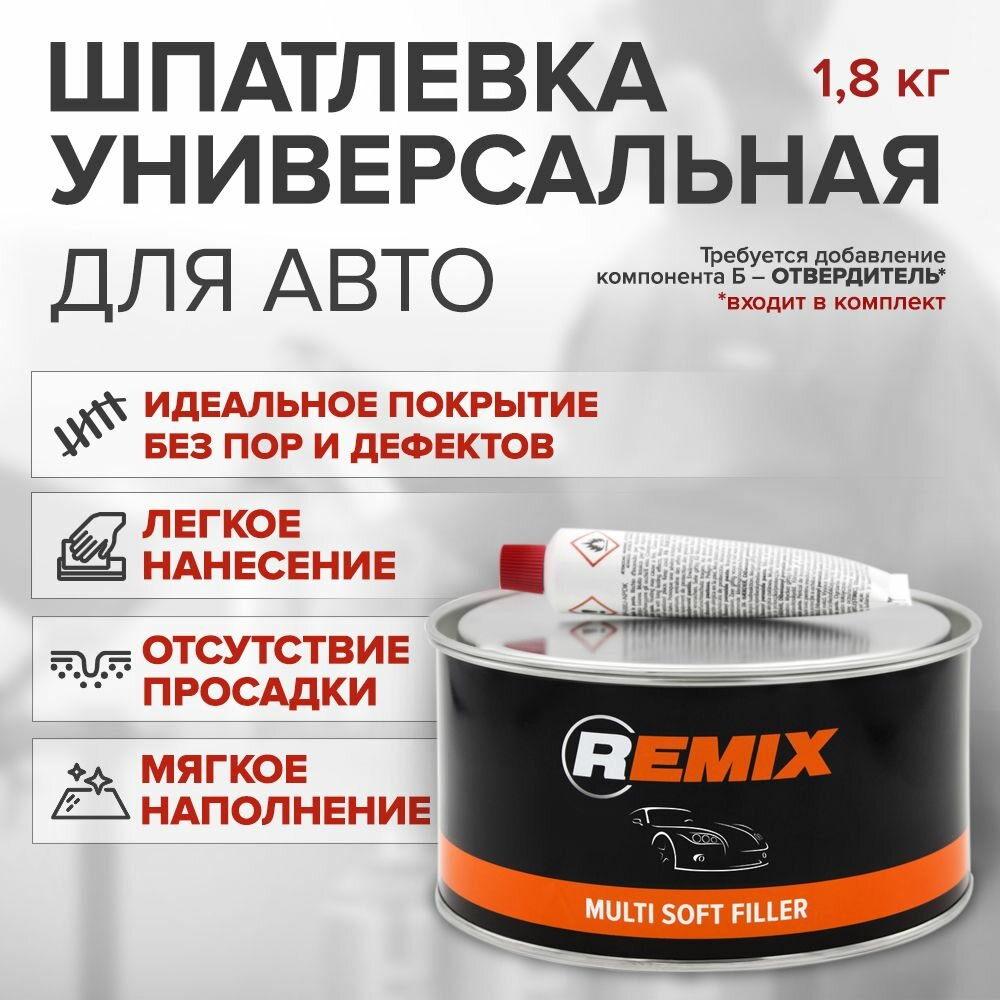 Шпаклевка, Шпатлевка, автомобильная универсальная cо стекловолокном REMIX 1,8 кг/2К полиэфирная шпаклевка с отвердителем в комплекте интересное: