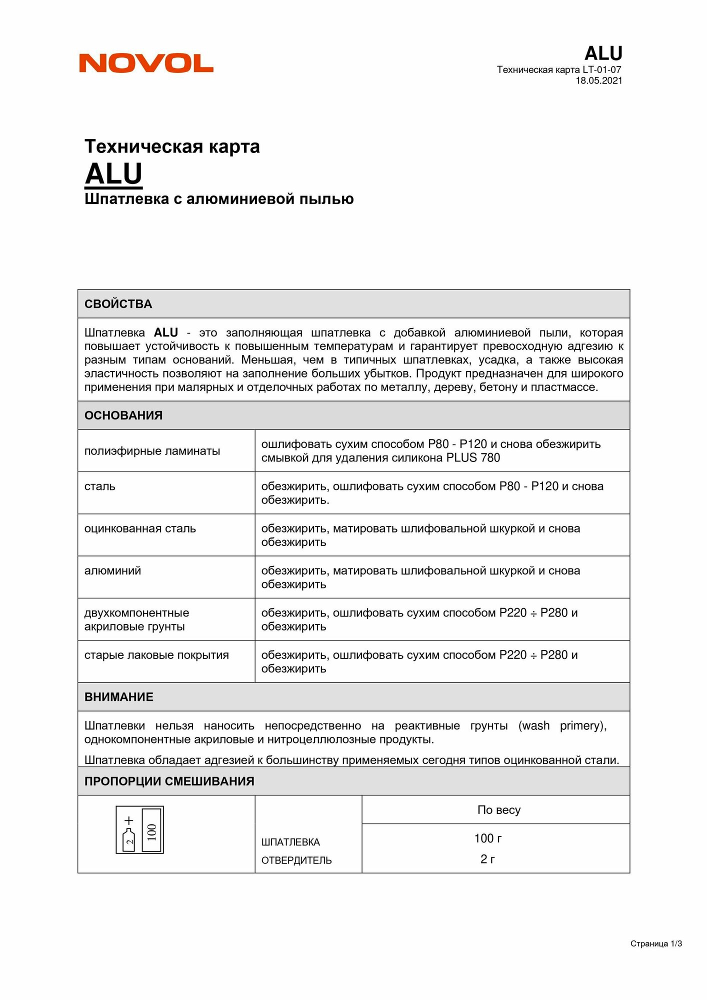 Шпатлевка с алюминием Novol alu 1,8кг интересное: