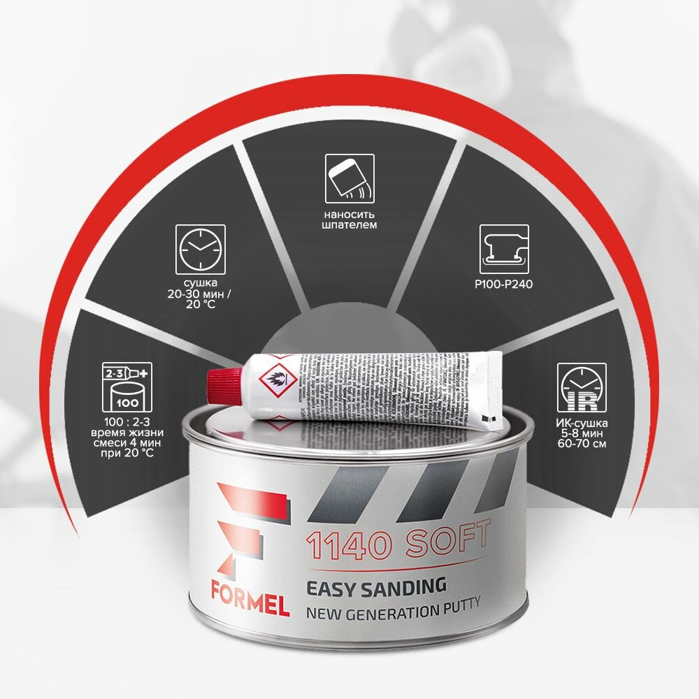 Шпаклевка, Шпатлевка, автомобильная 2К универсальная полиэфирная 0,9 кг с отвердителем в комплекте / FORMEL 1140 SOFT интересное: