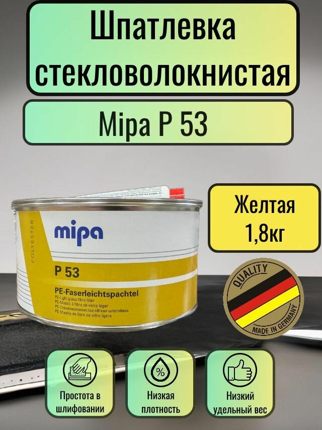 Шпатлевка стекловолокнистая лёгкая P53 PE-Faserleichtspachtel Желтая 1л. (в таре 1,8кг) интересное: