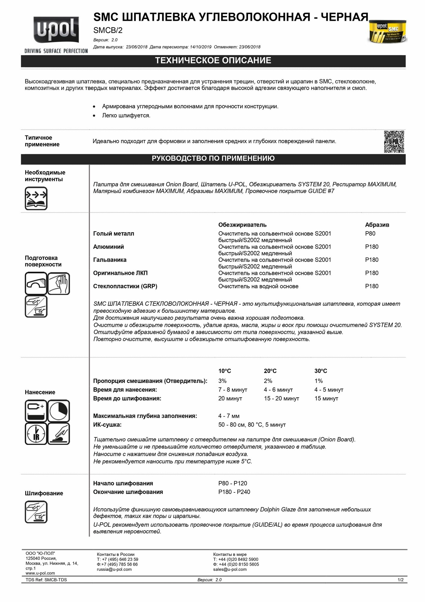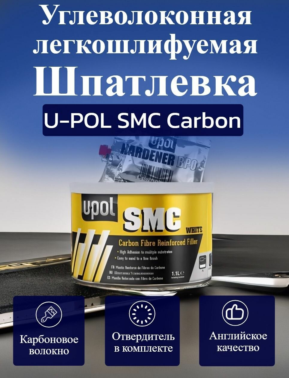 | Комплектация | углеволоконная шпатлевка U-POL SMC+ отвердитель |