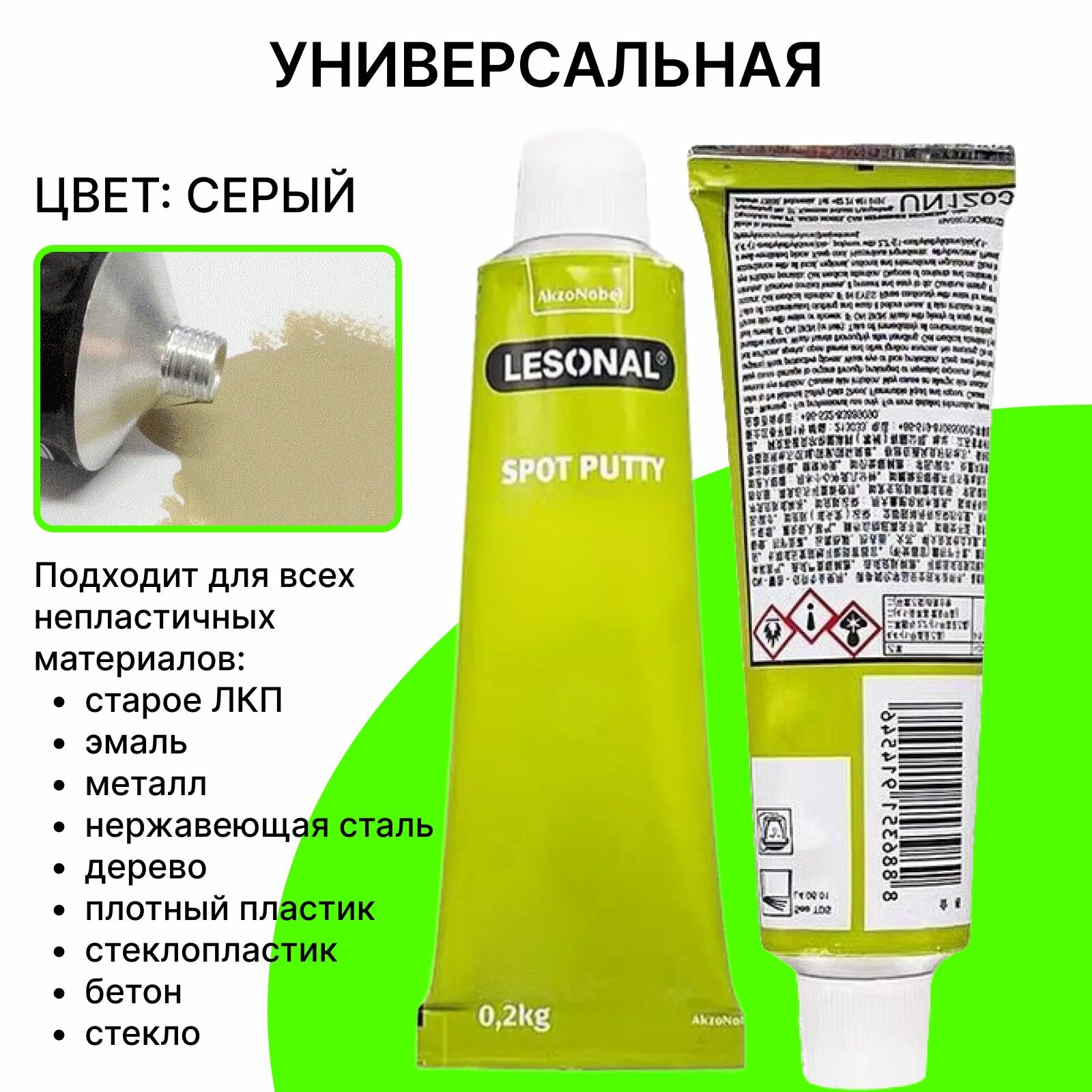 Шпатлевка однокомпонентная тюбик 200мл, Lesonal автошпатлевка универсальная для ремонта кузова, цвет: серый интересное: