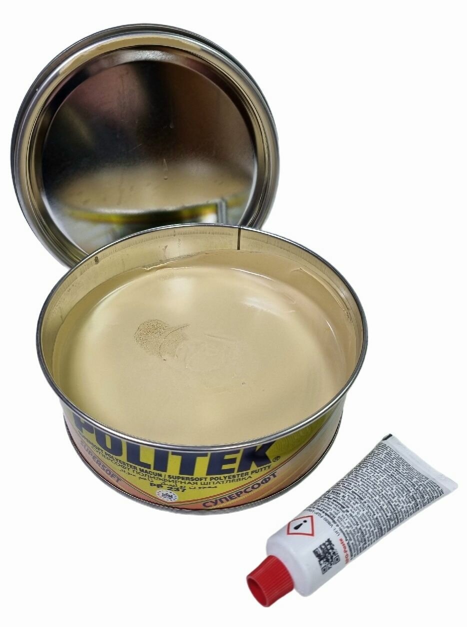 Шпатлевка полиэфирная суперсофт Политек (Politek), двухкомпонентная шпатлевка 900 гр + отвердитель