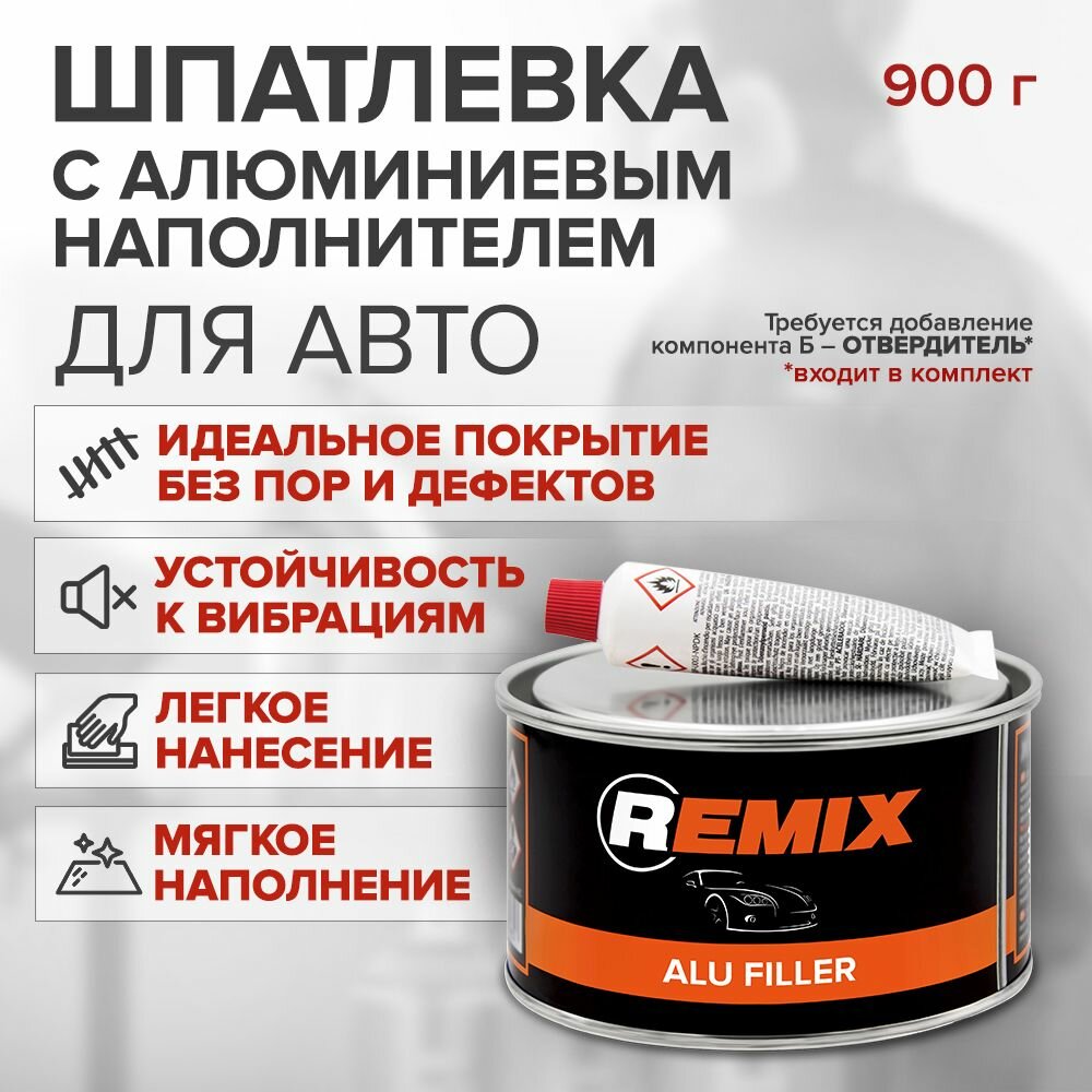 Шпаклевка, Шпатлевка, с алюминиевым наполнителем для кузова автомобиля REMIX ALU FILLER 0,9 кг / 2К шпатлевка с отвердителем в комплекте интересное: