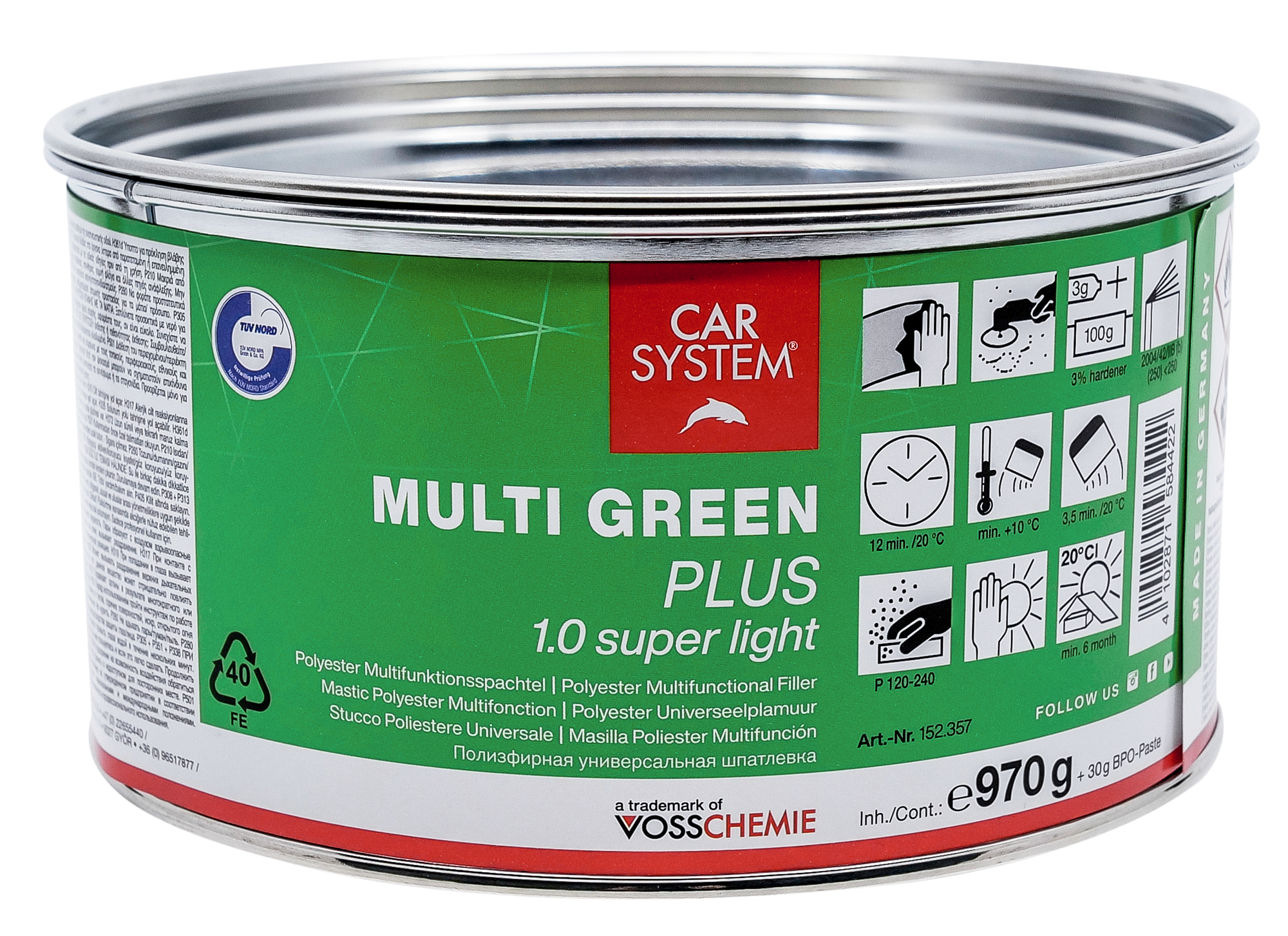 Шпатлевка 2К автомобильная полиэфирная универсальная CarSystem MULTI GREEN PLUS 1.0 SUPER LIGHT, зеленая (1.0 кг) интересное: