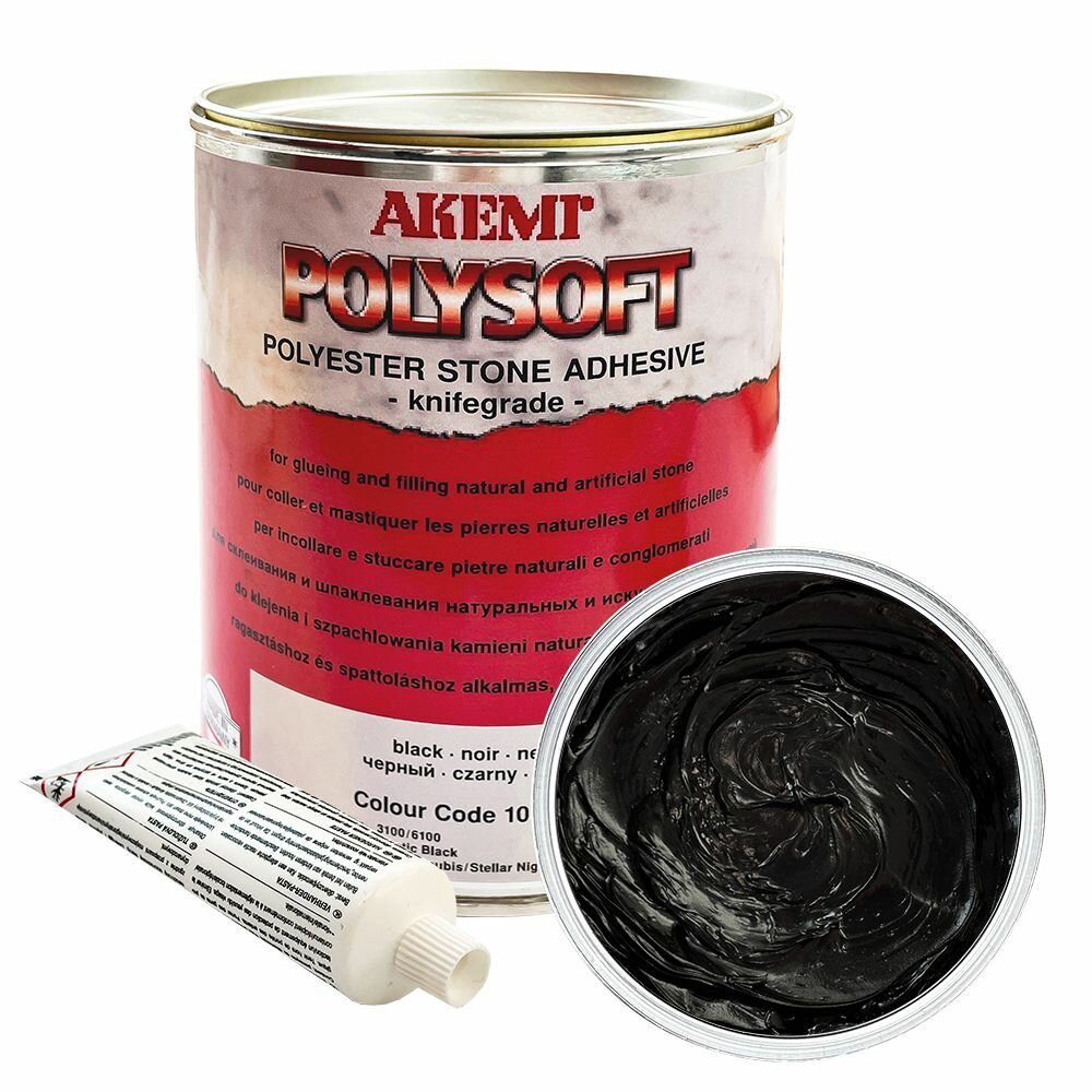 Купить Густой полиэфирный быстрый клей-шпатлевка Polysoft AKEMI (Полисофт акеми), для мрамора и камня, черный, 1 л.