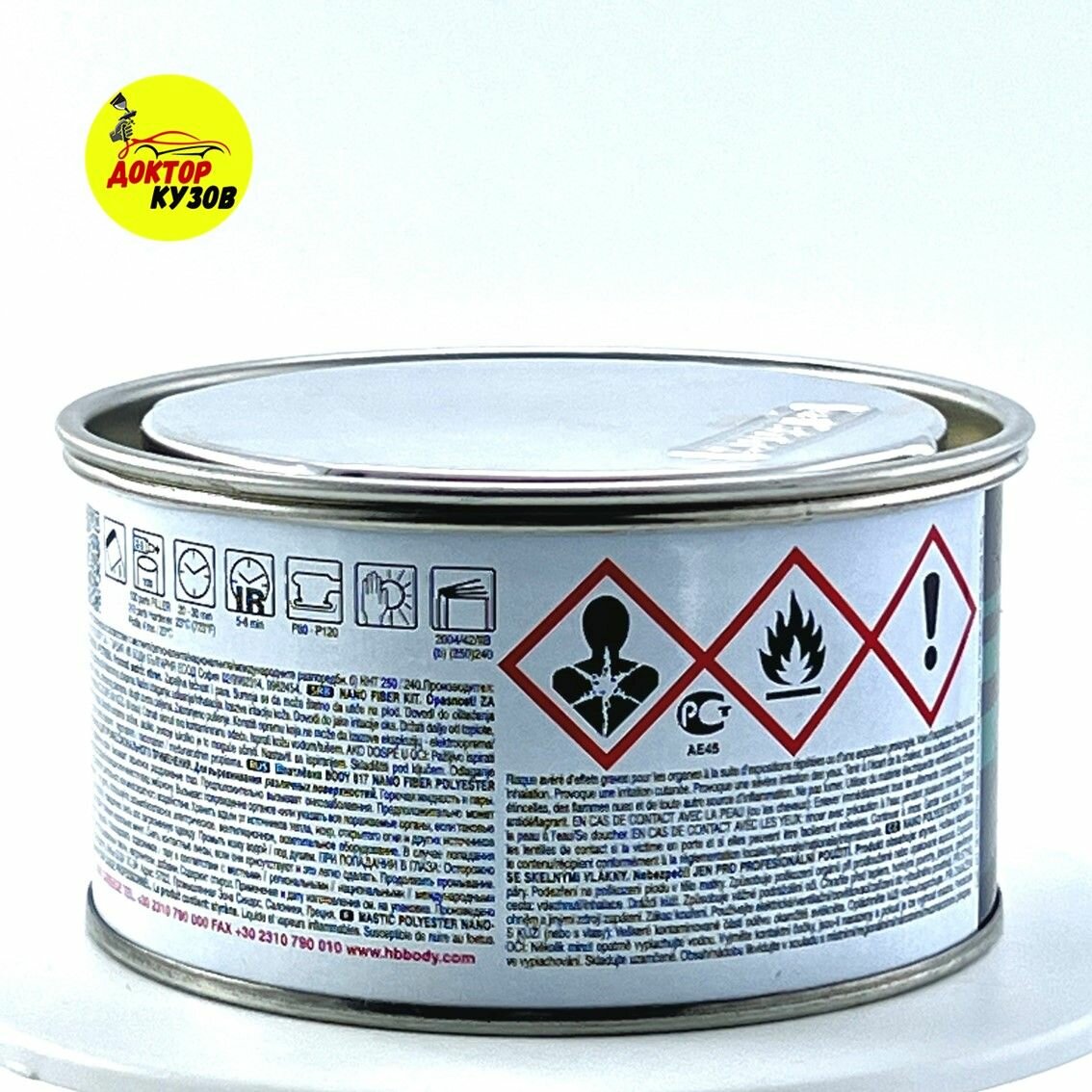 Шпатлевка автомобильная со стекловолокном HB BODY 617 NANO FIBER POLYESTER FILLER, 2К, банка 0,5 кг с отвердителем интересное:
