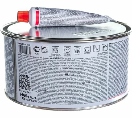 Шпатлевка со стекловолокном HB BODY F250 BODYFIBER, зеленый, банка, 1.5кг интересное:
