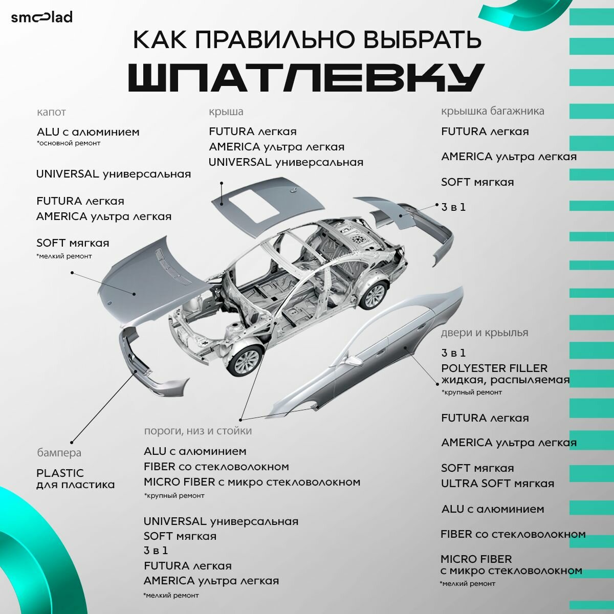 СохранитьШпатлевка автомобильная полиэфирная мягкая SMOOLAD ULTRASOFT 1 кг + отвердитель / Универсальная шпаклевка наполняющая для кузова двухкомпонентная интересное: