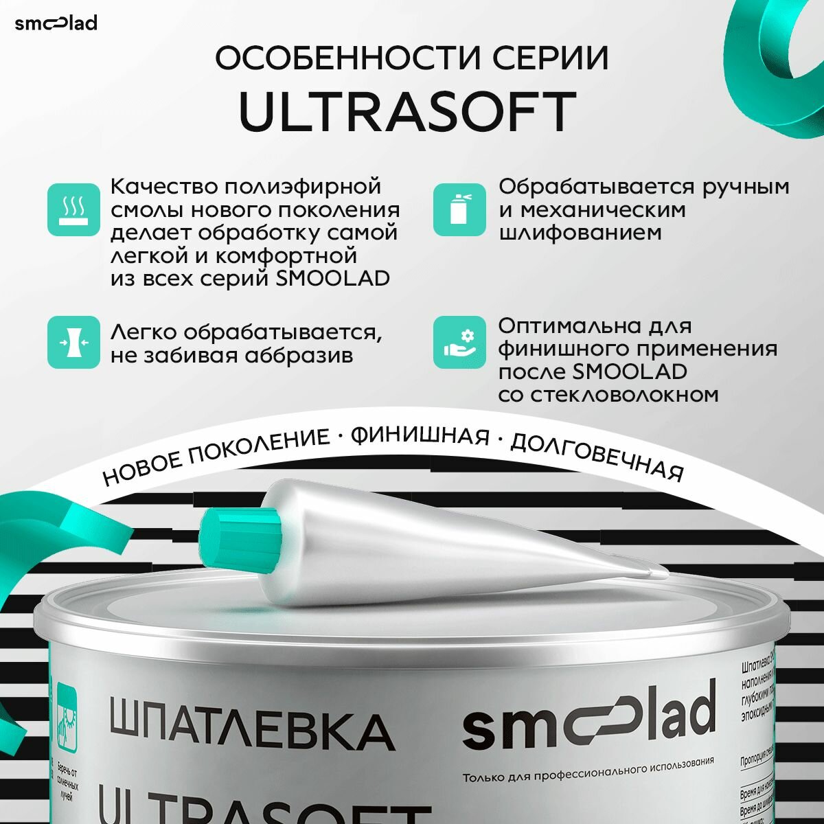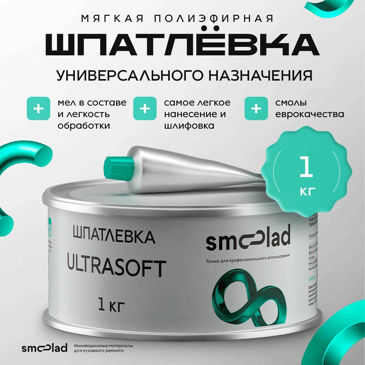 Купить Шпатлевка автомобильная полиэфирная мягкая SMOOLAD ULTRASOFT 1 кг + отвердитель / Универсальная шпаклевка наполняющая для кузова двухкомпонентная