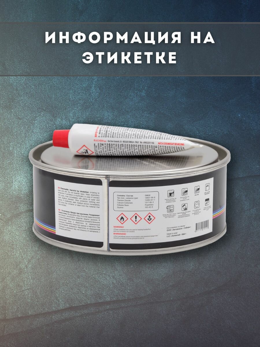 Шпатлевка автомобильная SMOOLAD FIBER 1,7 кг + отвердитель / Универсальная автошпатлевка со стекловолокном