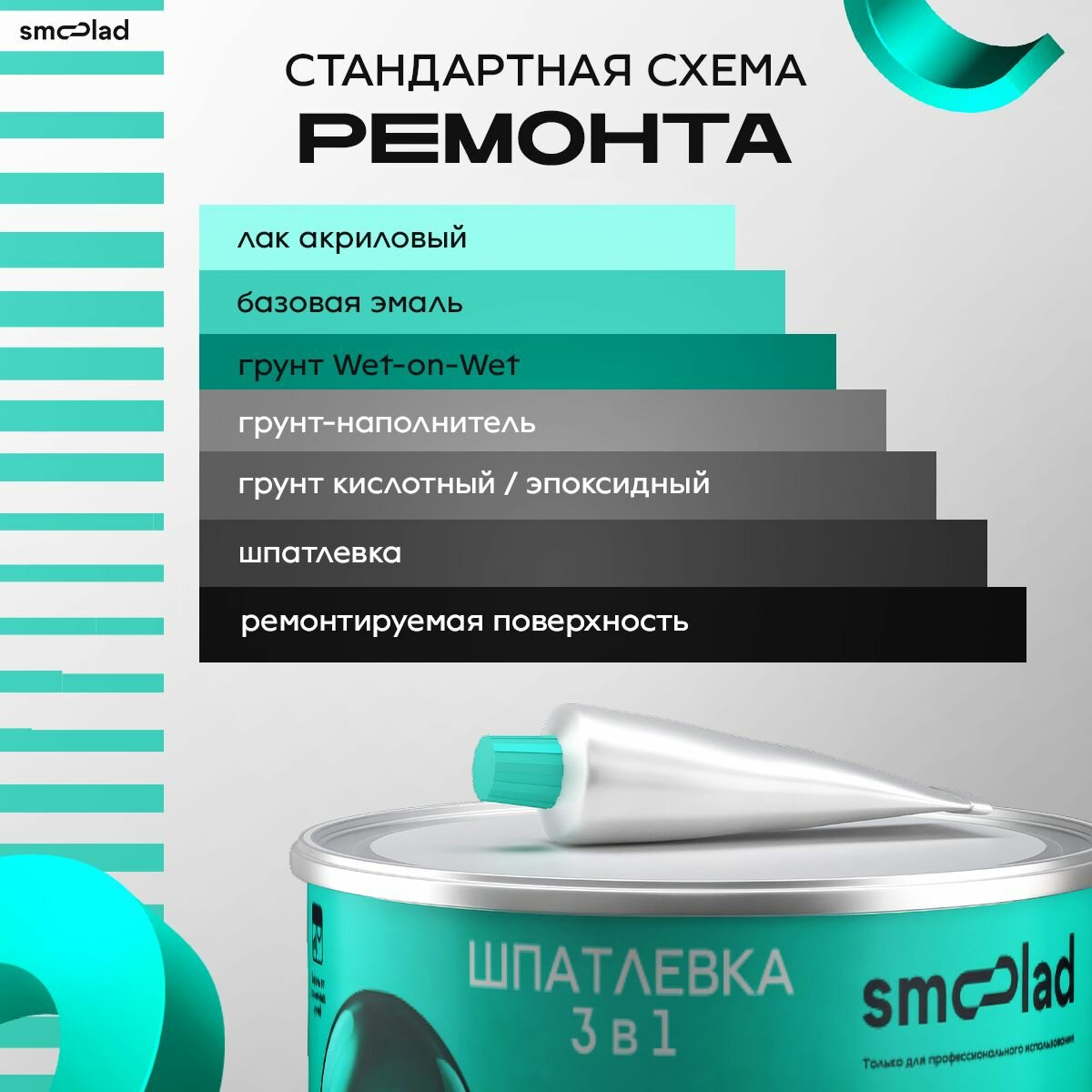 Шпатлевка автомобильная полиэфирная SMOOLAD UNIVERSAL 0,5 кг + отвердитель / Универсальная шпаклевка для машины двухкомпонентная