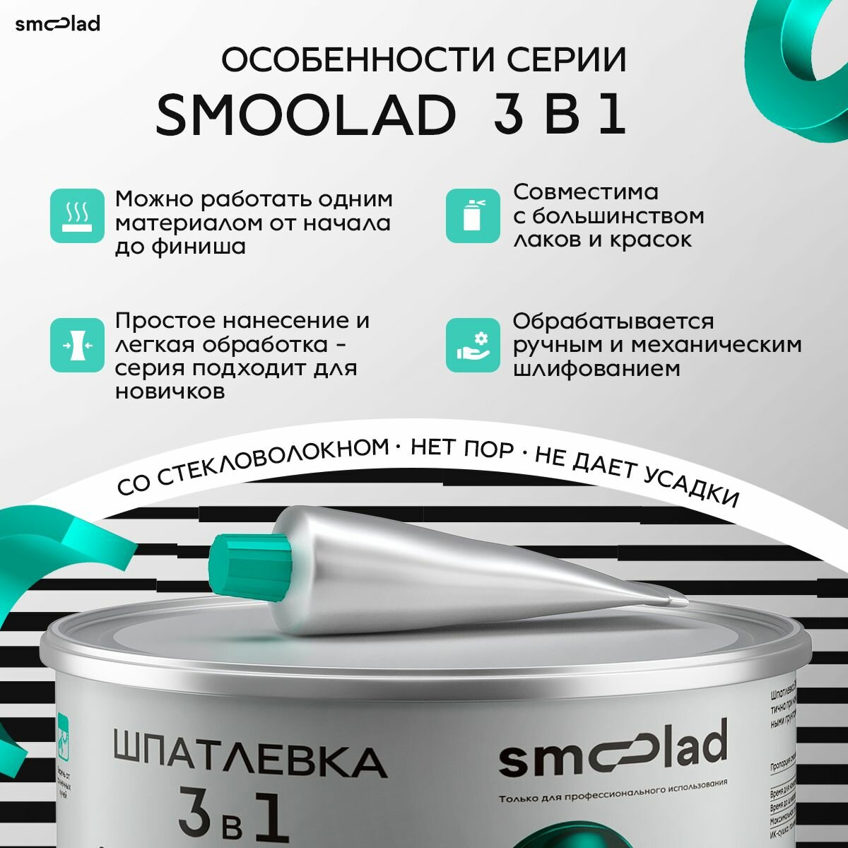 Купить Шпатлевка автомобильная со стекловлокном 3 в 1 SMOOLAD (SOFT, MICROFIBER, FINISH) 1,0 кг + отвердитель (суперновинка!)