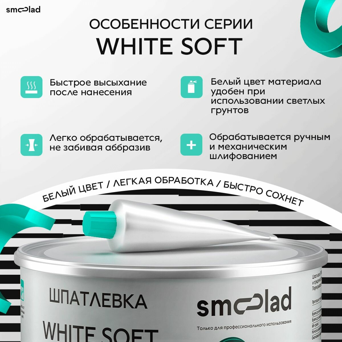 Шпатлевка автомобильная мягкая БЕЛАЯ SMOOLAD WHITE SOFT 1,0 кг + отвердитель